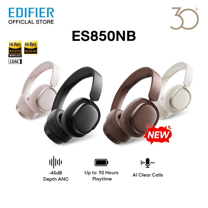 EDIFIER ES850NB -45dB Active Noise Cancelling Wireless Over Ear Headphones 92 Hours Playtime Touch-to-chat Function HiRes Audio LDAC/AAC/SBC AI Clear Calls Foldable Design Fast Charging Crystal Clear Calls Skin-friendly Bluetooth 5.4