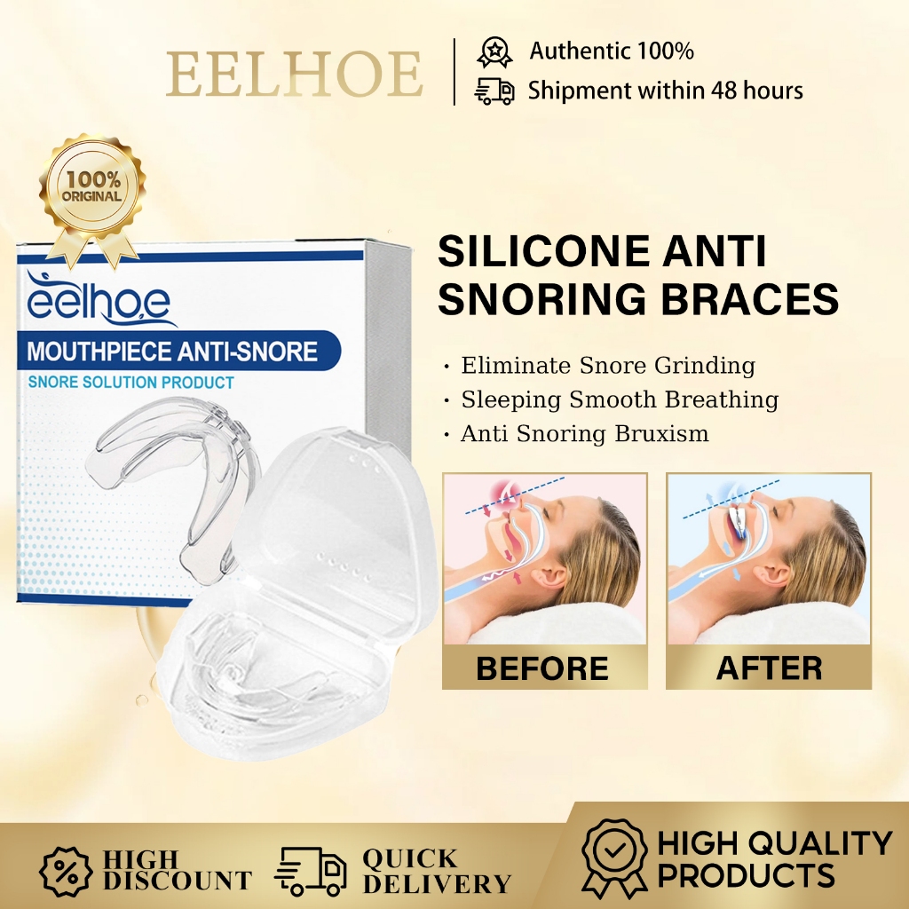 EELHOE Silica Gel Stop Snoring Mouthpiece Eliminate Snore Grinding Teeth Sleeping Aid Smooth Breathing Anti Snoring Bruxism Mouth Guard