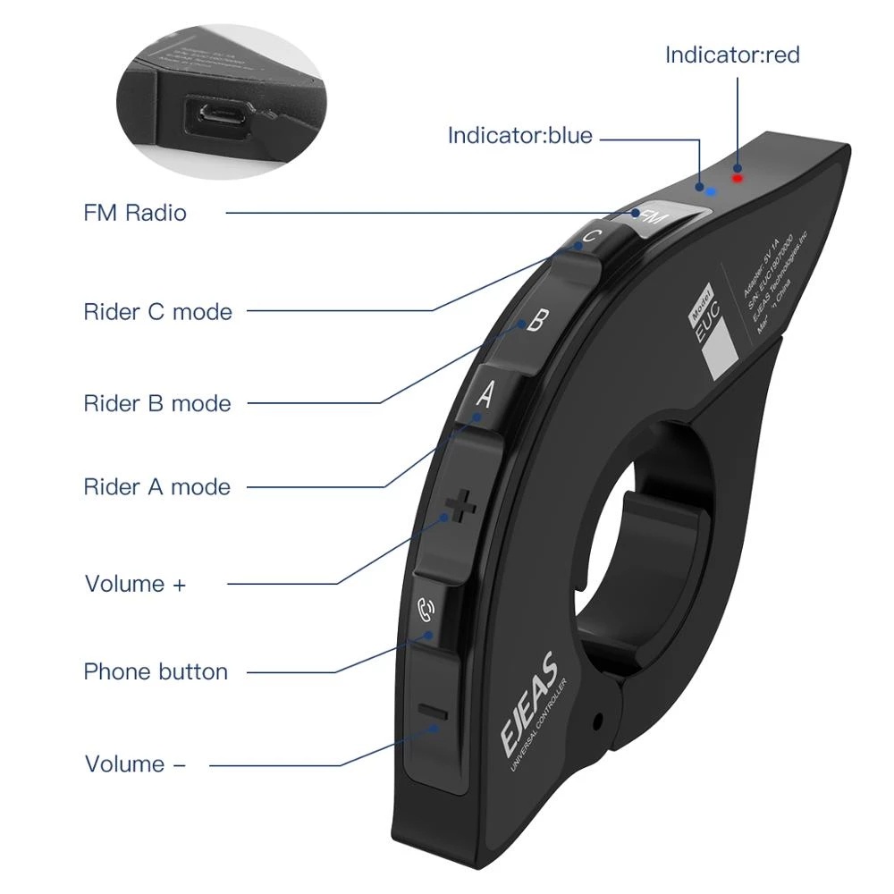 EJEAS EUC Bluetooth Motorcycle Intercom Handlebar Remote Control for Q2/Q7/E300/V4 Plus Moto intercomunicador