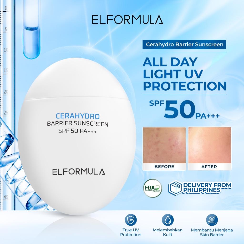 ELFORMULA CeraHydro Barrier Sunscreen SPF 50 PA+++ - True UV Protection with Anti Blue Light Agent
