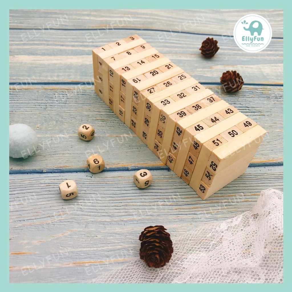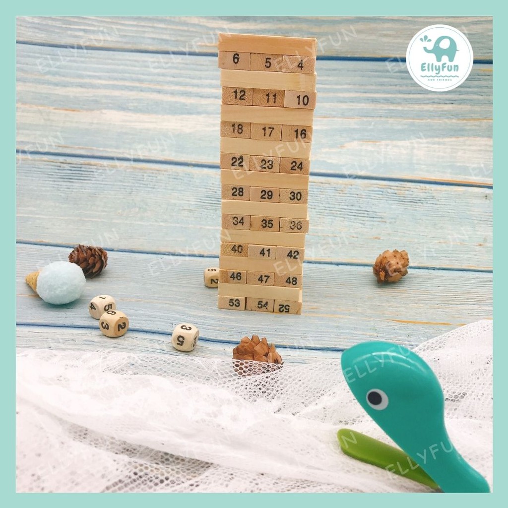ELLYFUN Wooden Stacking Tower with Wooden Number Blocks Stacking Sorting Game Math Toys BT0034