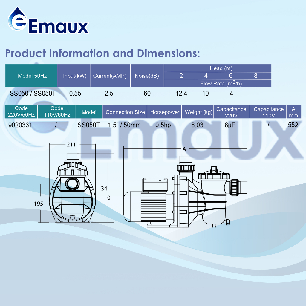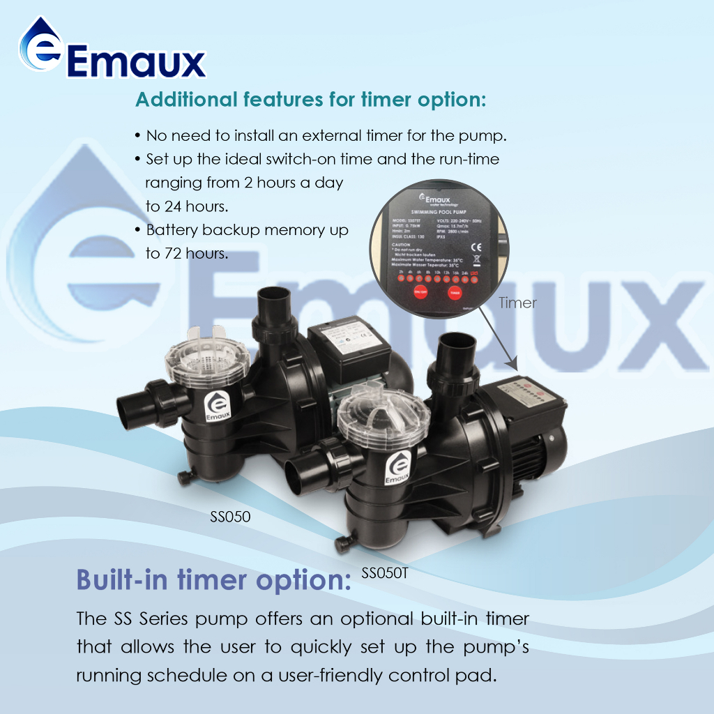 EMAUX Pump SS Series with Timer 0.50HP 220V 50Hz - SS050T
