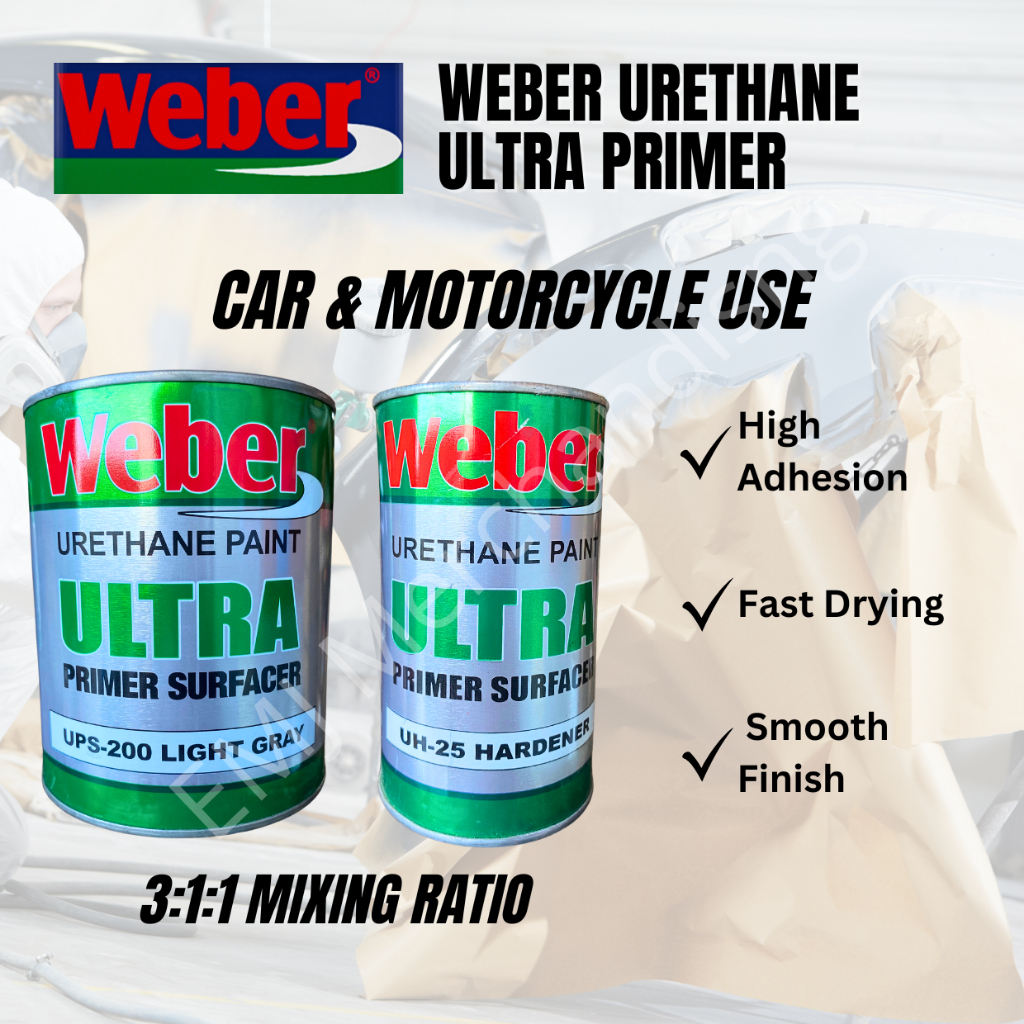 EMJ Weber Urethane Paint ULTRA Primer Surfacer UPS-200 Light Gray | 3:1 Mix | Car & Motorcycle Use