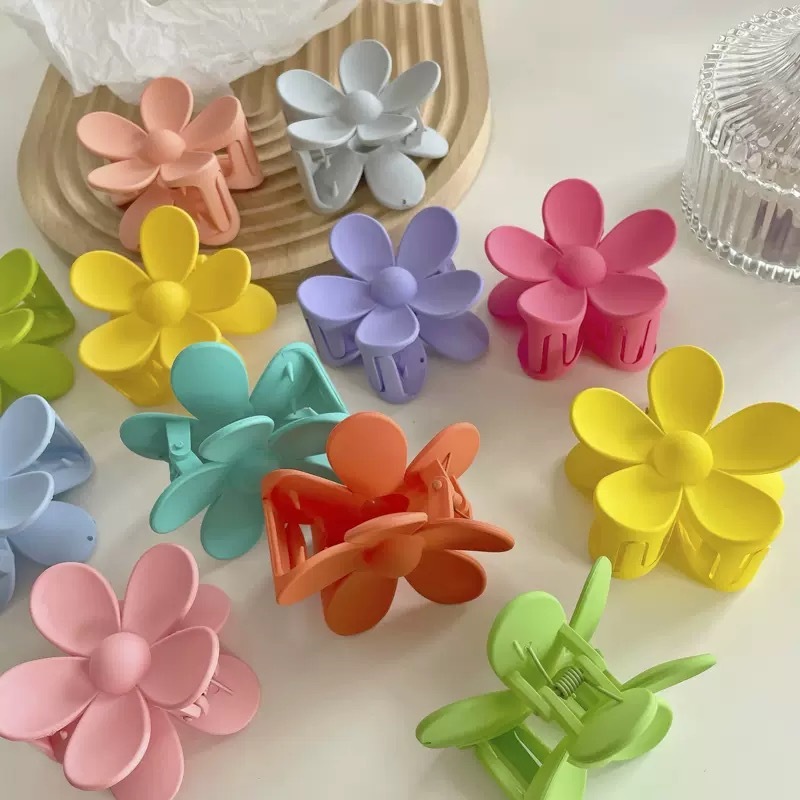 EMS Korean Style Colorful Flower Acrylic Hair Clip Claw Simple Hair Clamp Women's Hair Accessories