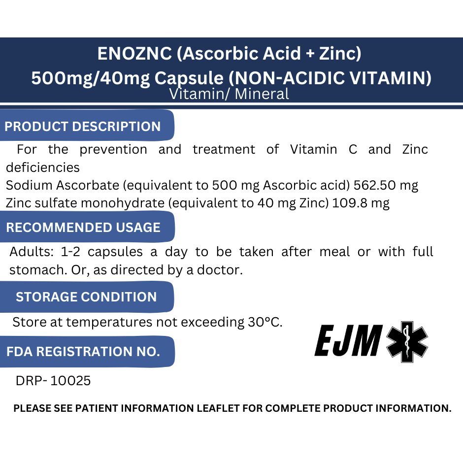ENOZNC Sodium Ascorbate + Zinc 500mg/40mg Capsule - 100 capsules
