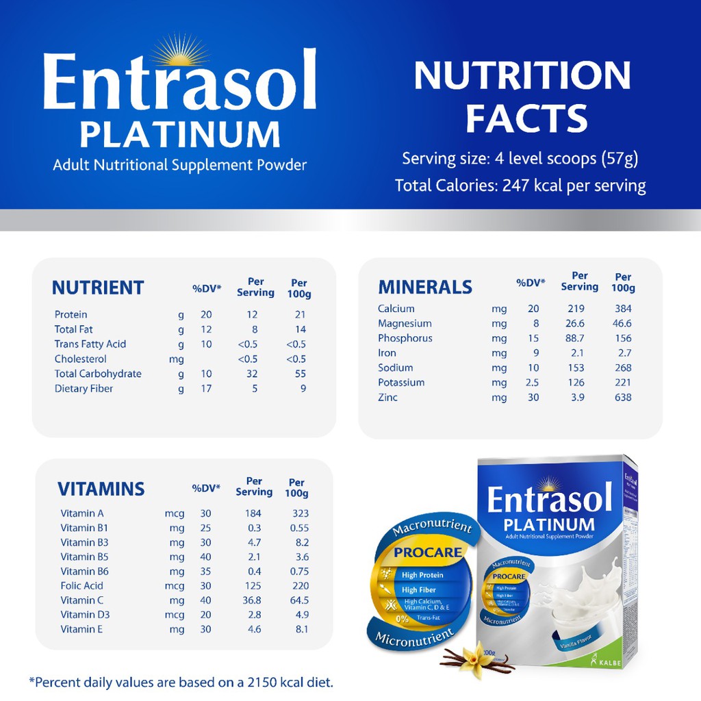 Entrasol Platinum Milk For Adult - Vanilla 600g