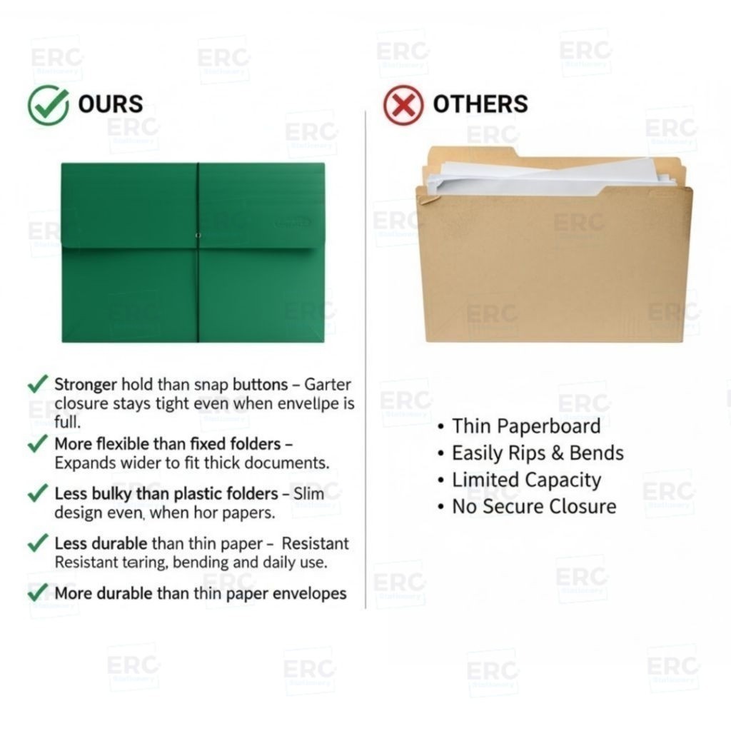 ERC Heavy Duty Expanding Envelope A4 Legal Long Garter Folder Secure Filing Organizer School Office