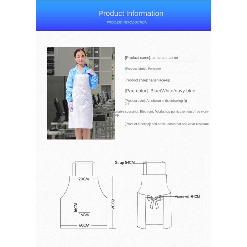 ESD Apron Anti-Static Antistatic Dust-Proof Protection Apron For Electronic Factory Clean Room
