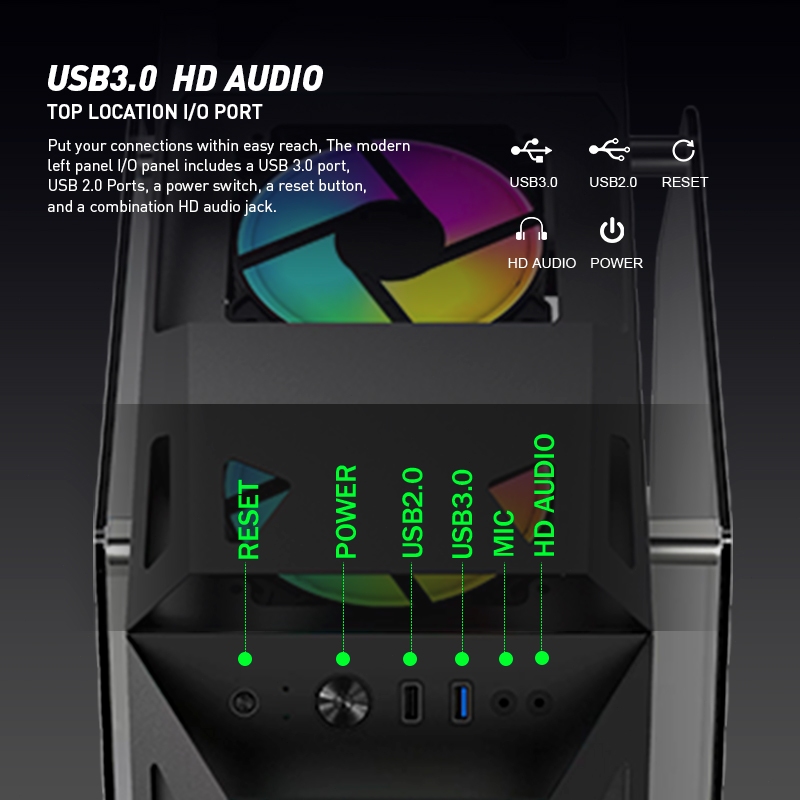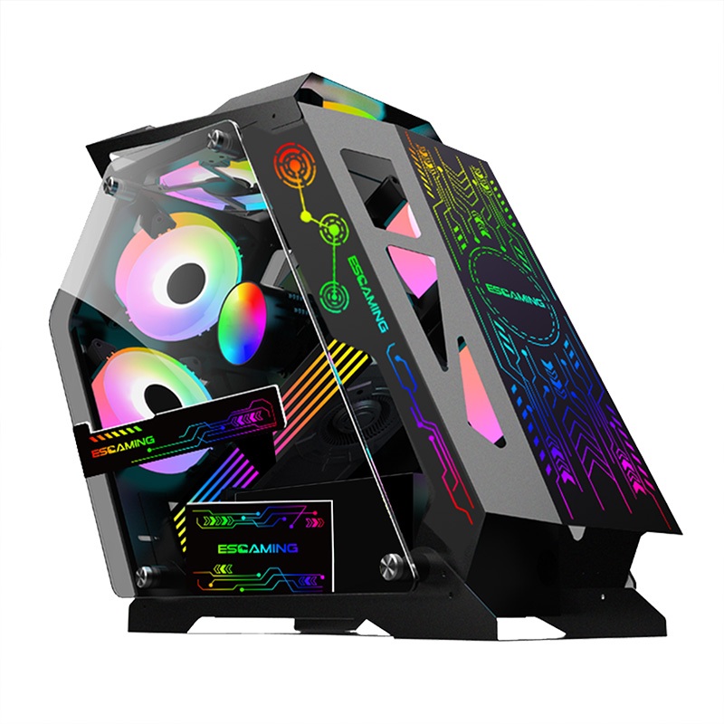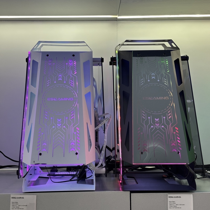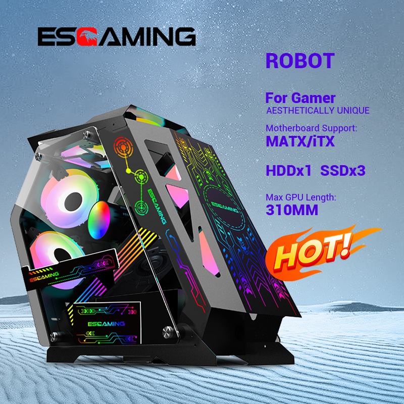ESGAMING Robot Pc Case 6 Fans Tempered Glass Panel Light Micro ATX Gaming Computer Case White/Black
