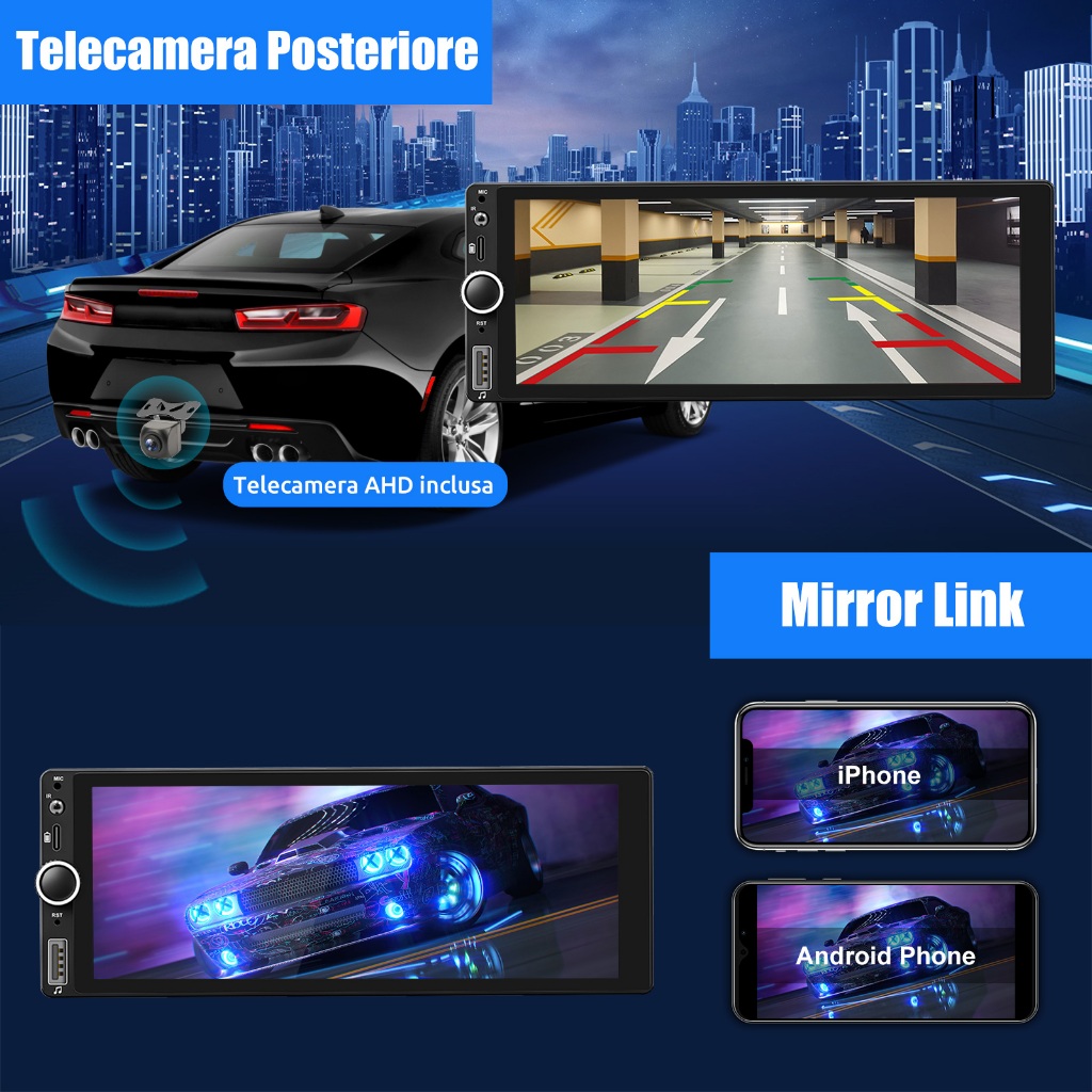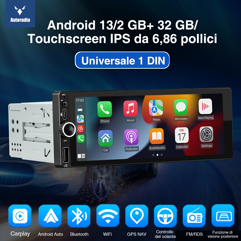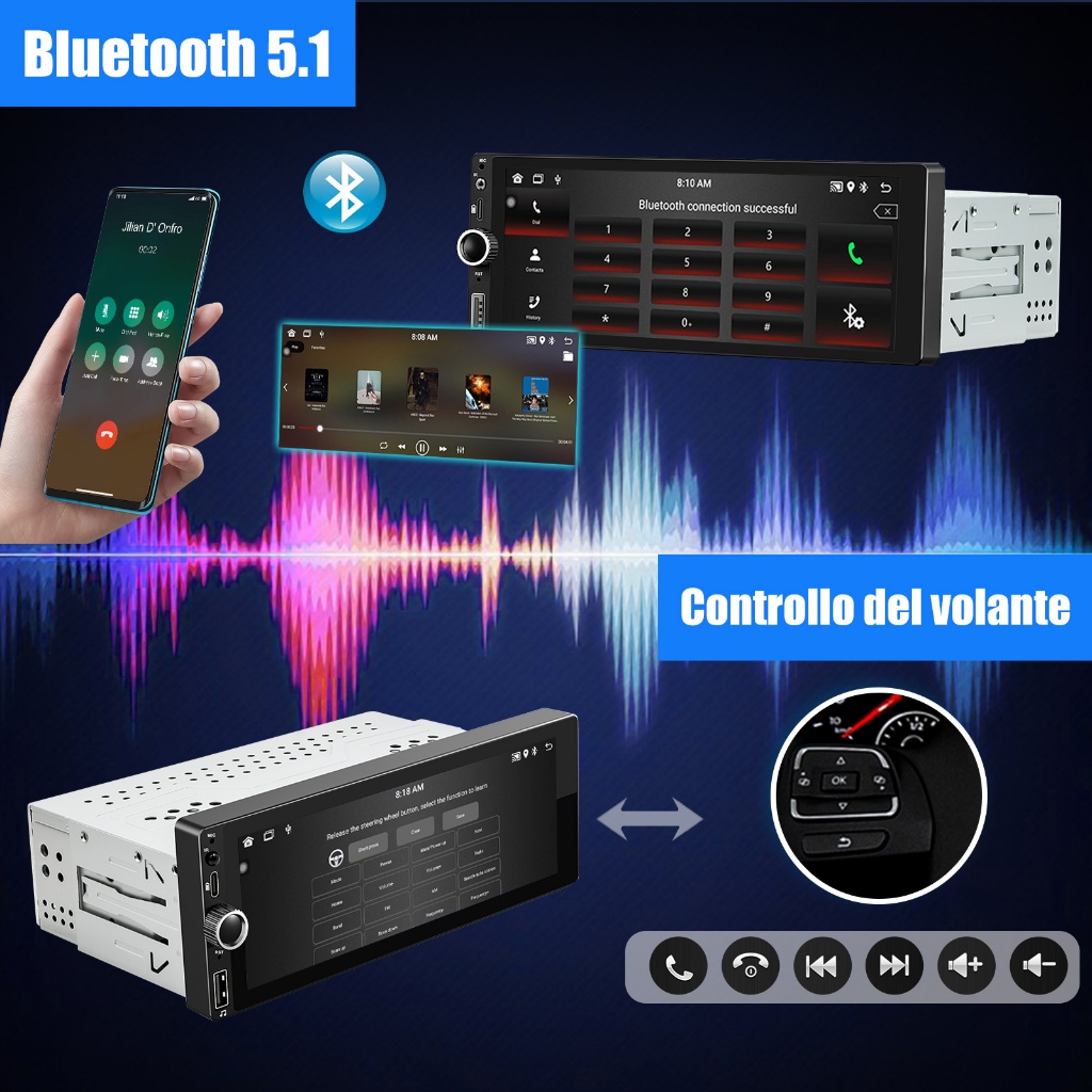 ESSGOO 4+64GB Carplay Android Auto Single 1 Din Universal Android Car PlayerTouch Screen MP5 Player Bluetooth Car Stereo Radio