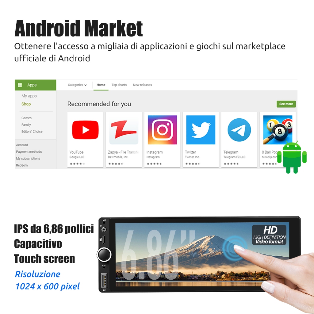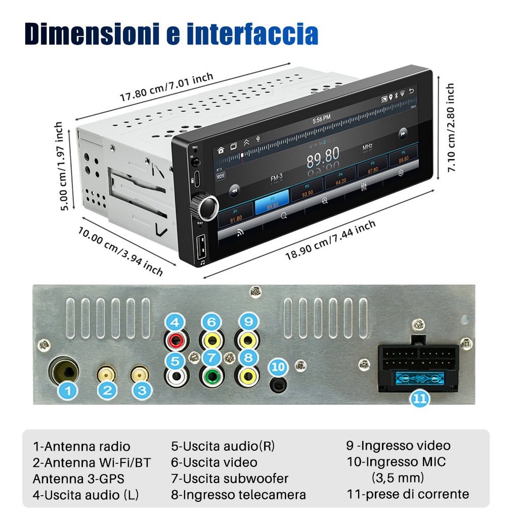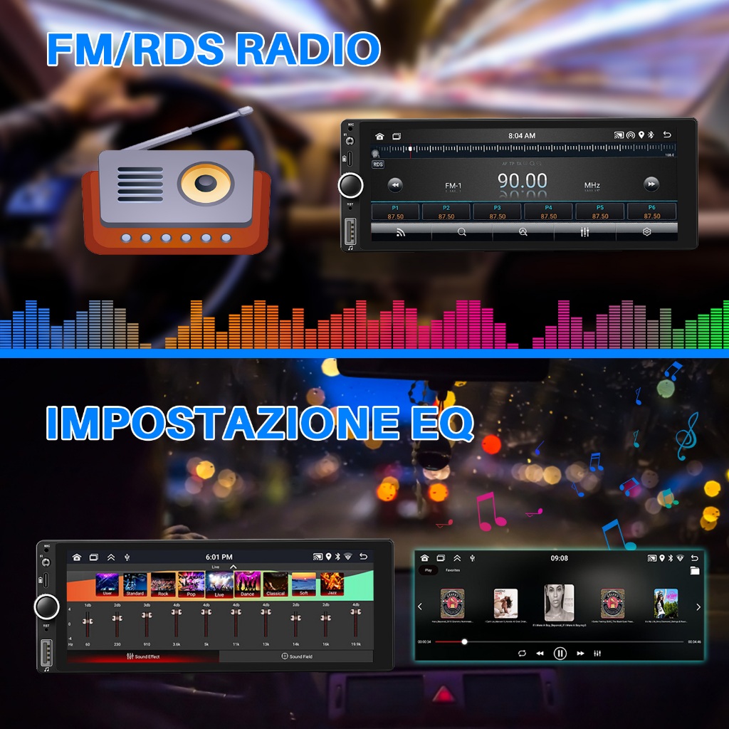 ESSGOO 4+64GB Carplay Android Auto Single 1 Din Universal Android Car PlayerTouch Screen MP5 Player Bluetooth Car Stereo Radio