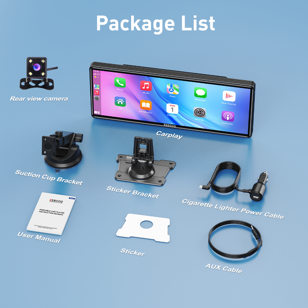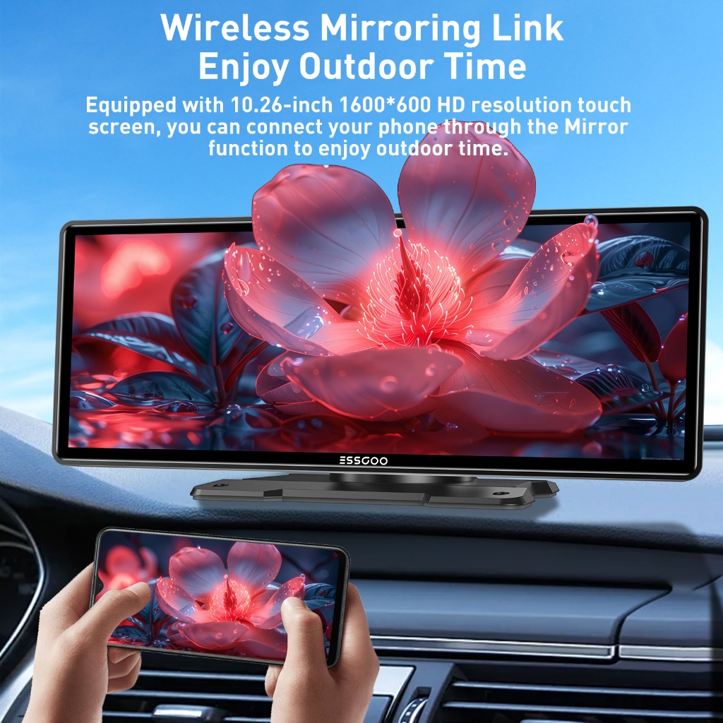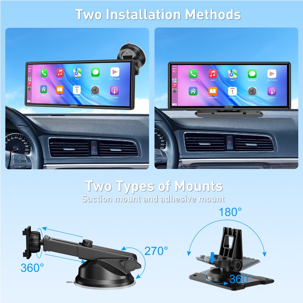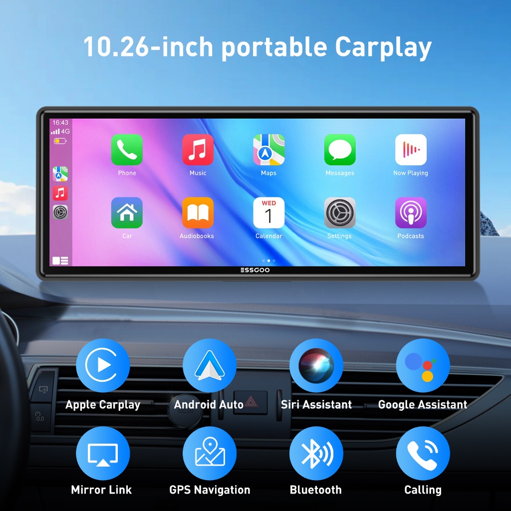 ESSGOO HD 10.26 INCH Portable Car Player Carplay Android Auto Bluetooth IPS 2.5D Touch Screen GPS Navigation Car Radio