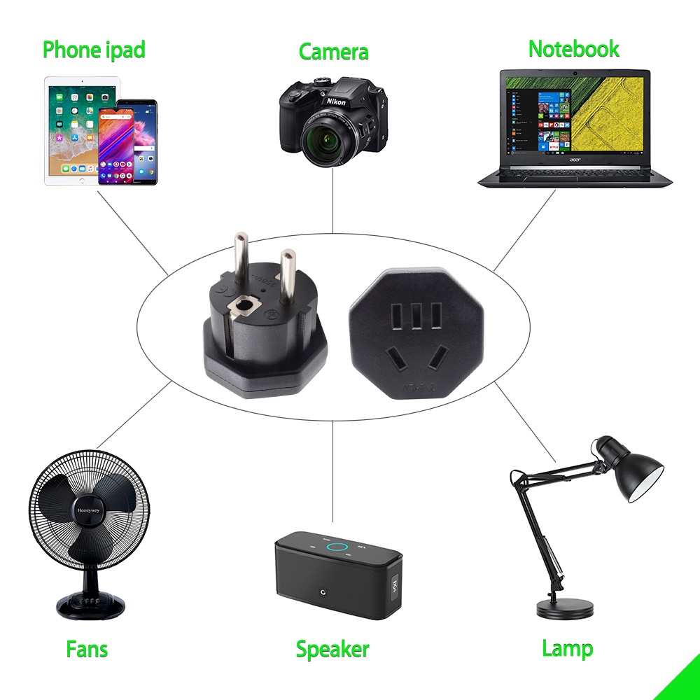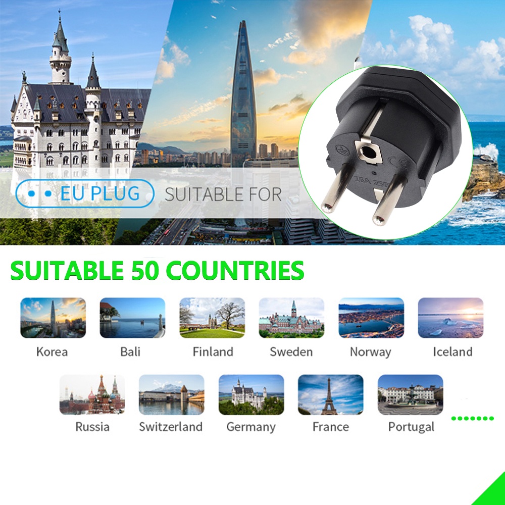 EU Plug Adapter Universal 16A EU converter 2 Round Pin Socket EU Wall Socket AC 250V Travel Adapter