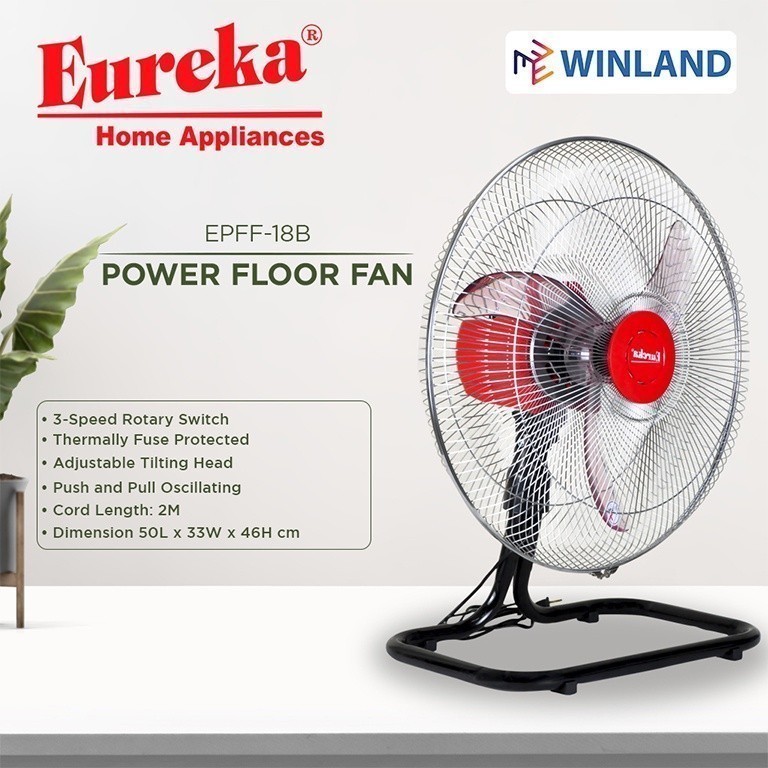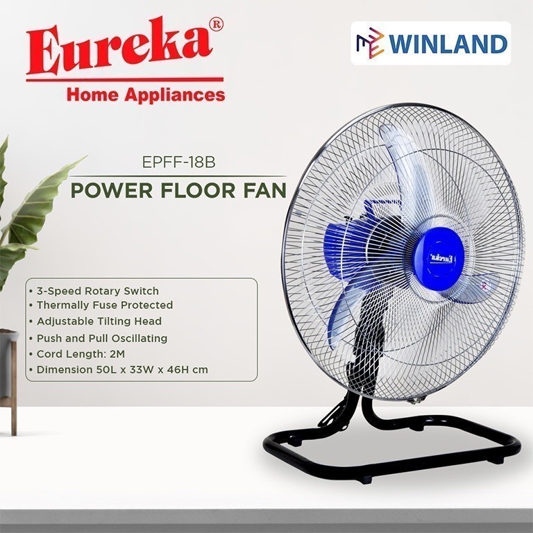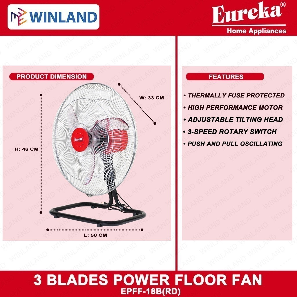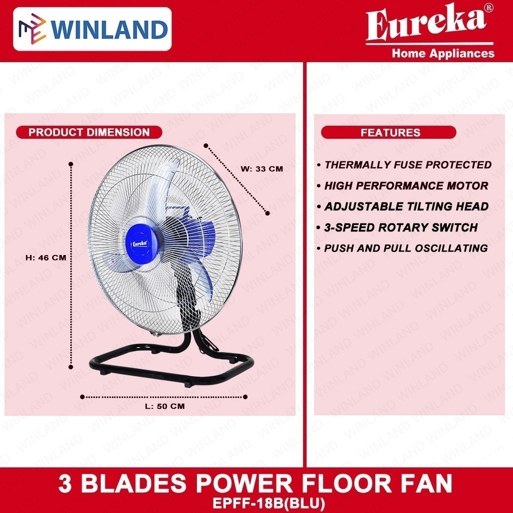 Eureka by Winland 18inches 3 Blades Power Floor Fan | Electric Fan EPFF-18B