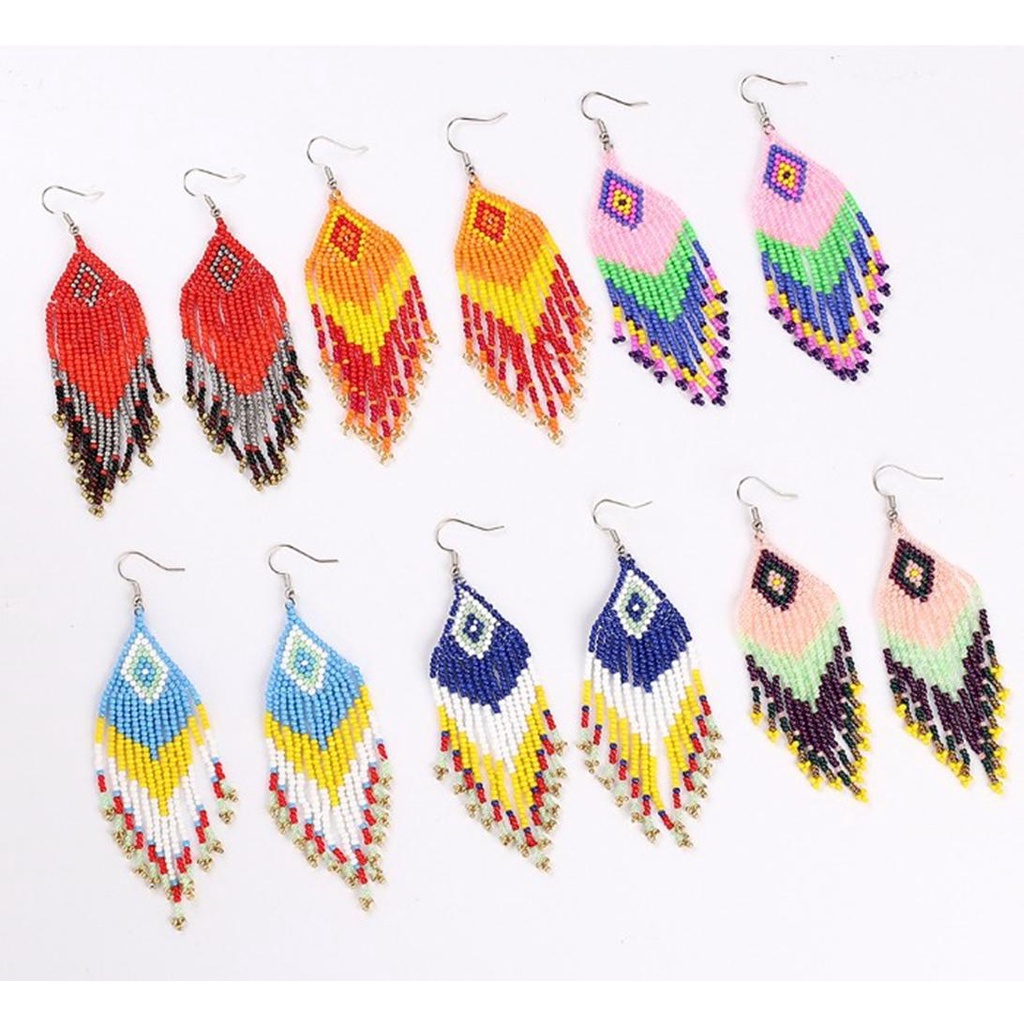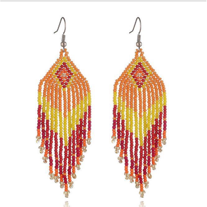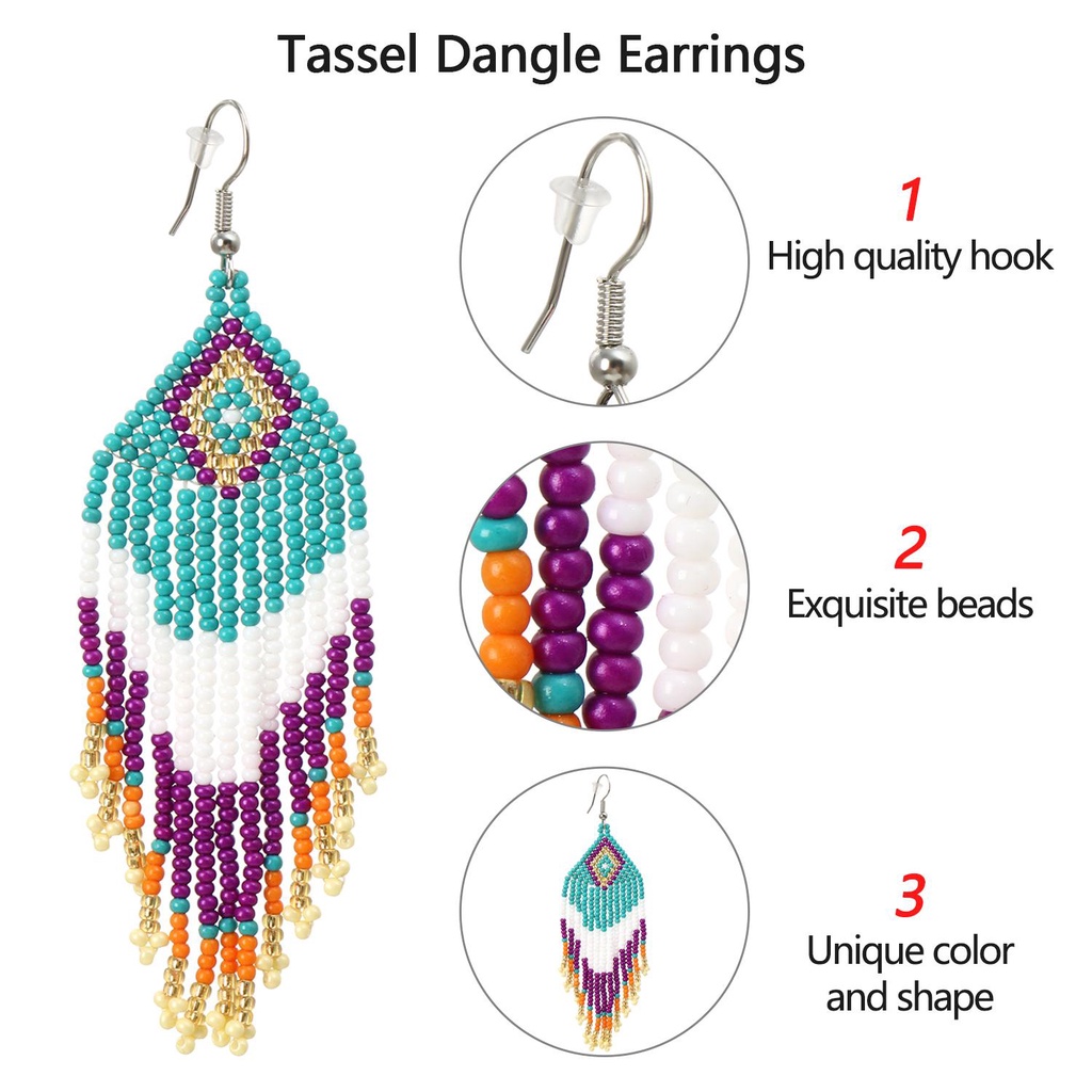 EUTUS Beaded Earrings Dangle Earrings Beaded String Beads Long Statement