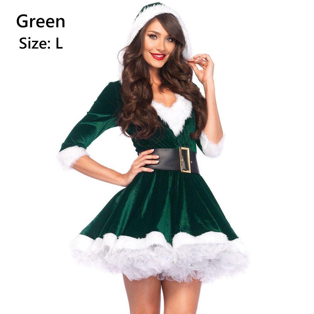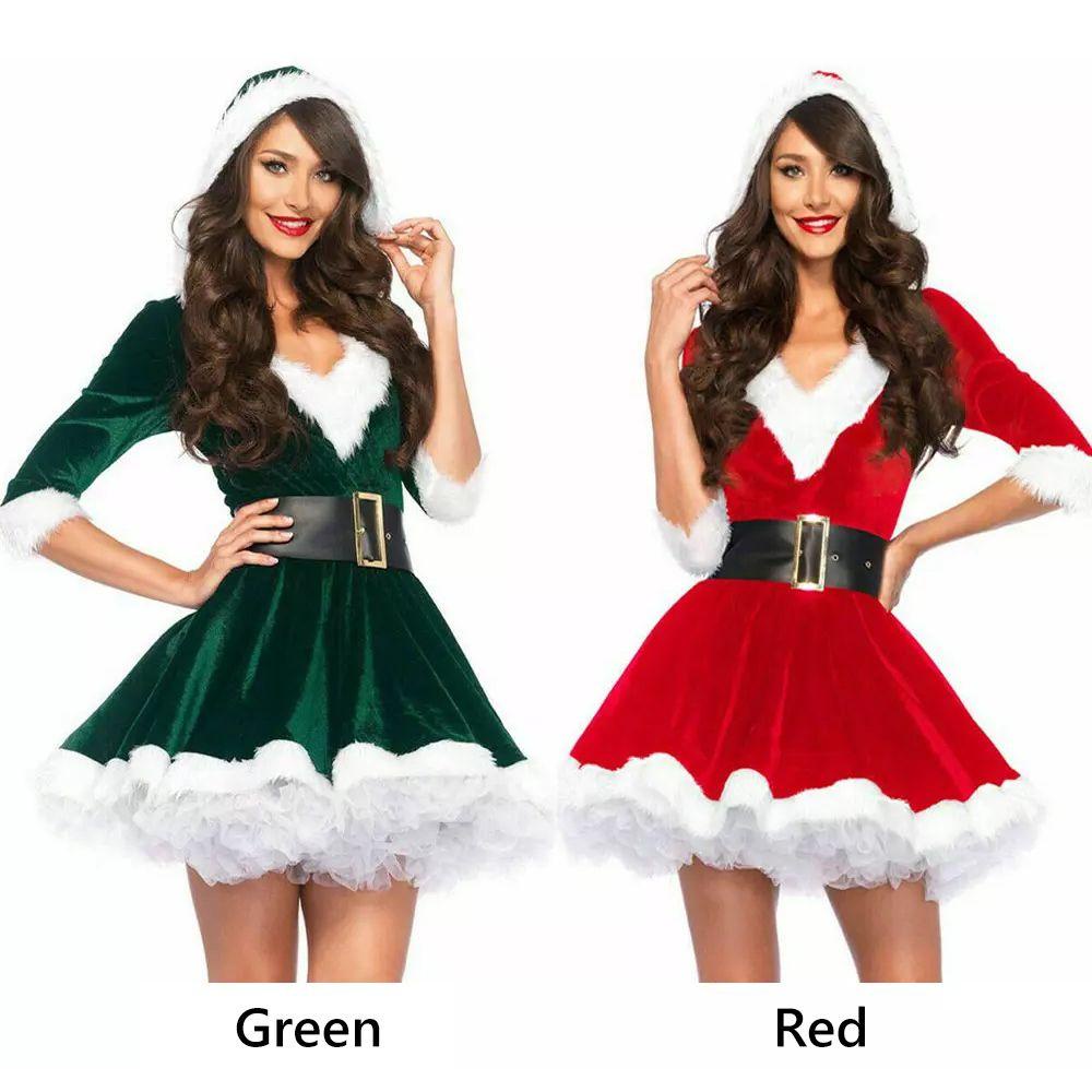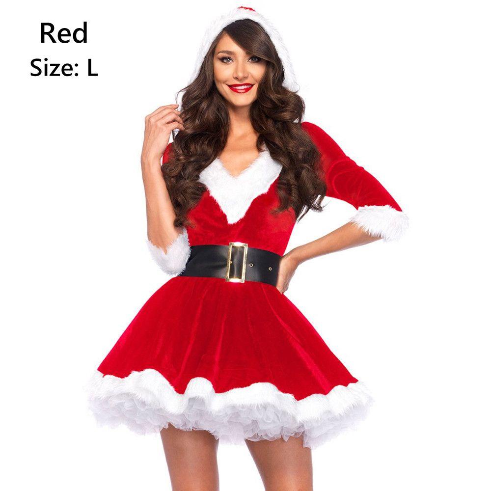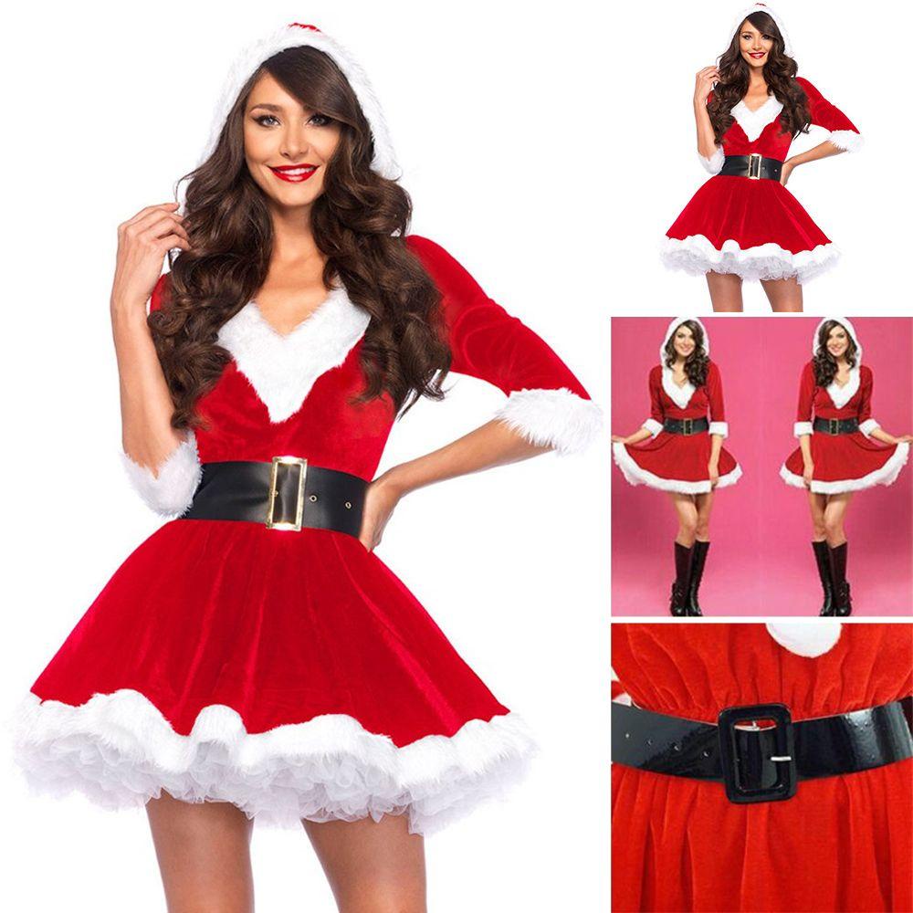 EUTUS Mrs Santa Claus Dress Xmas Theme Stage Performance Santa Mini Dress Hooded Party Club Miss Claus Dress Suit