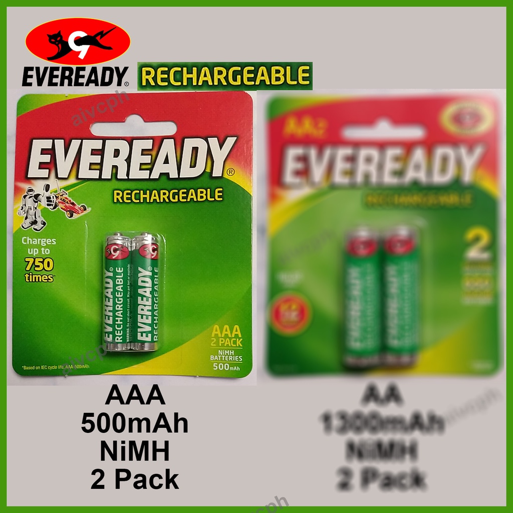 EVEREADY Rechargeable ( AAA 500mAh ) ( AA 1300mAh ) Batteries NiMH Battery (Eveready, not Energizer)