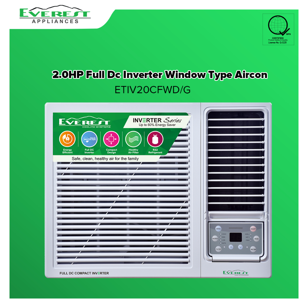 EVEREST 2.0HP Inverter Window Type Aircon/ Full Dc/ Compact Design/ Healthy Air Filter/ 22-32 sqm