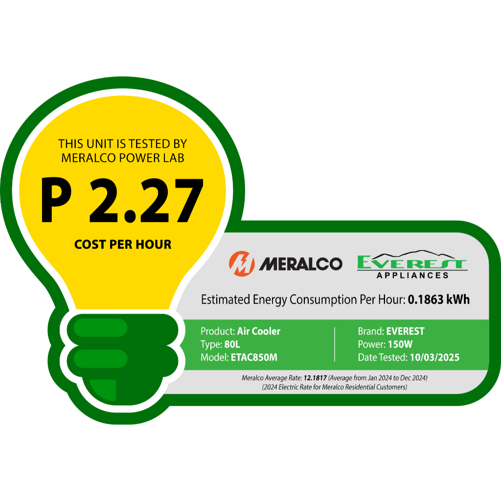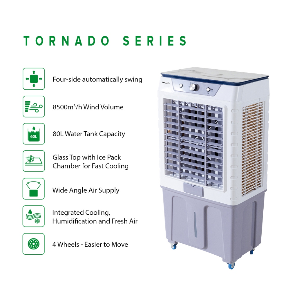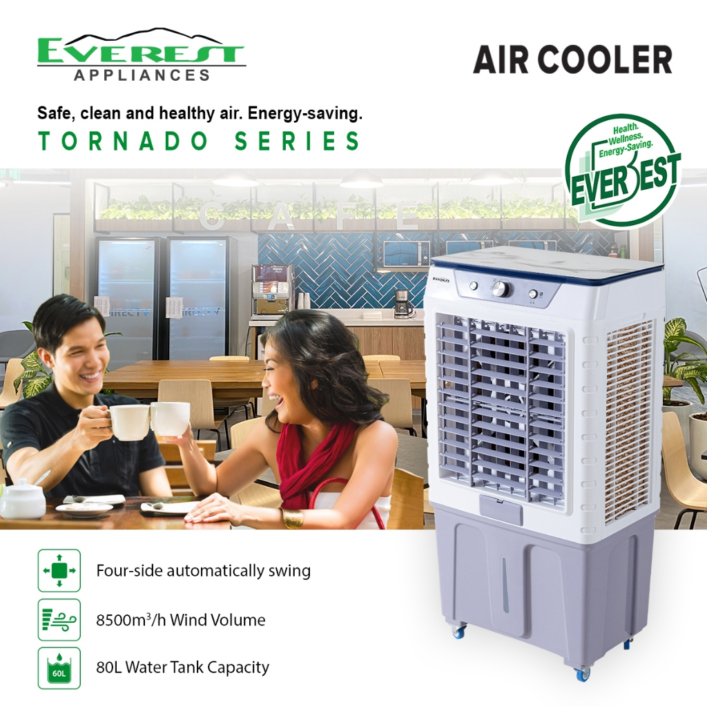EVEREST 80L Air Cooler/Wide Angle Air Supply/ 2 Ice Pack Chamber/ 3 fan speed ( low, medium & high)