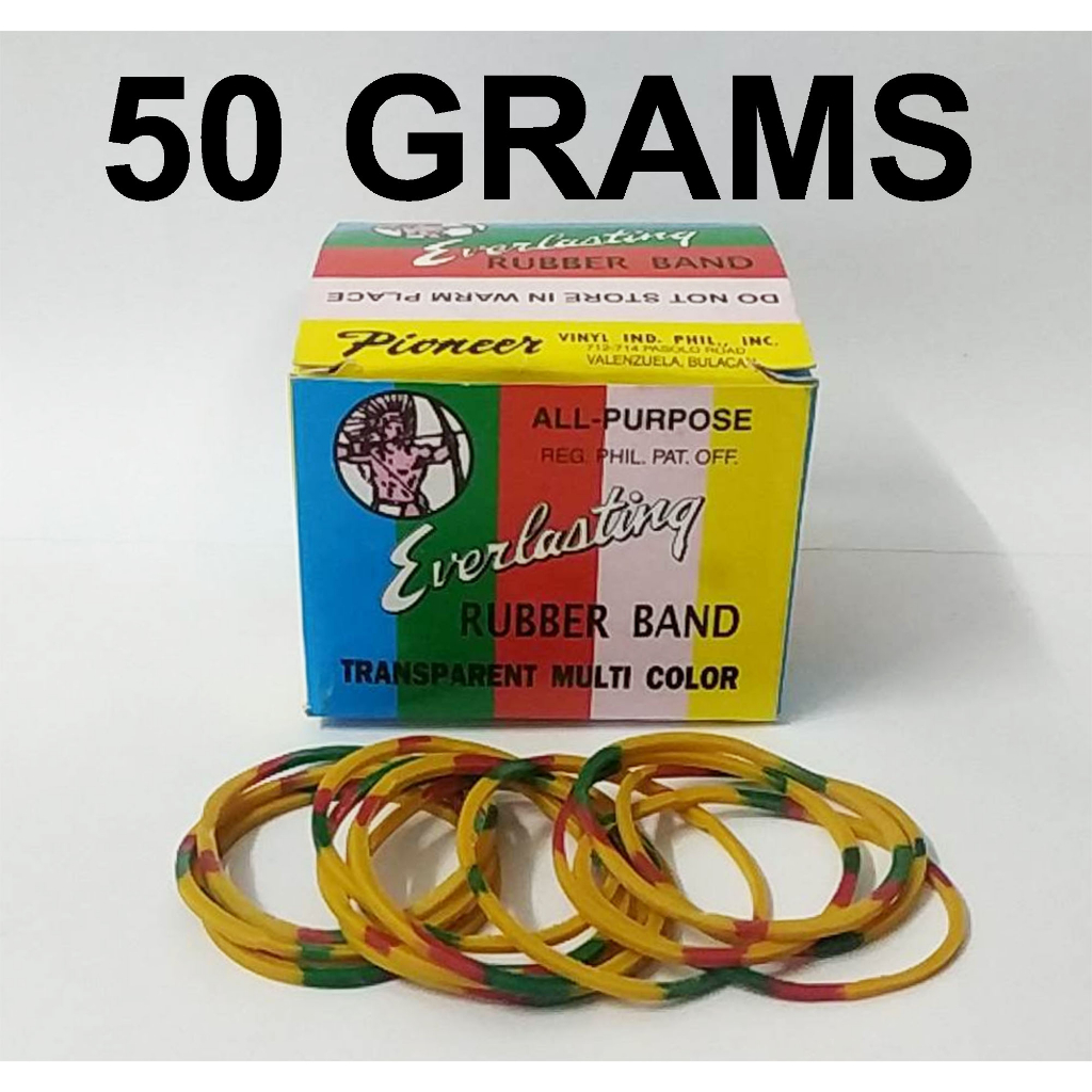 ( 4 BOX ) EVERLASTING RUBBER BAND 50 GRAMS TRANSPARENT MULTI COLOR PIONEER == 50GRAMS