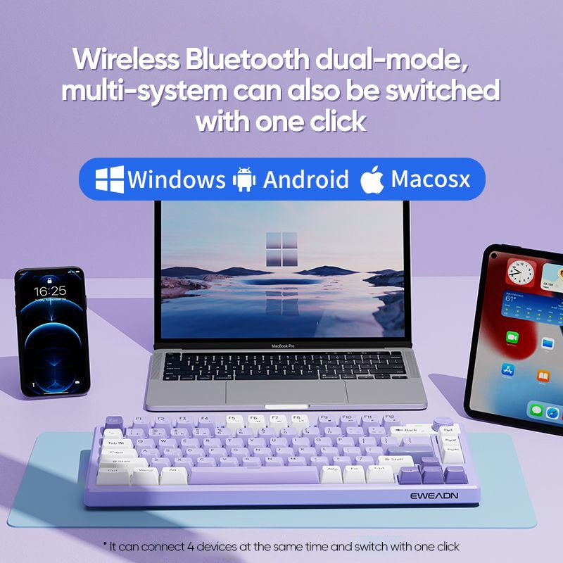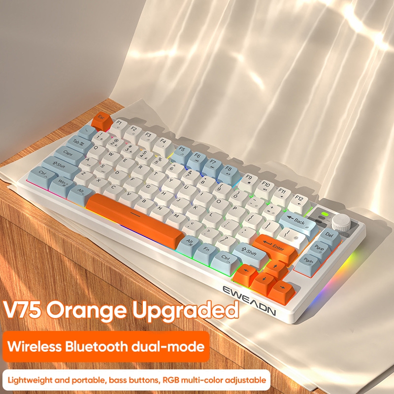 EWEADN V75Wireless Bluetooth Gaming Keyboard Rechargeable Illuminated Dual Mode Bluetooth 5.0/2.4Ghz