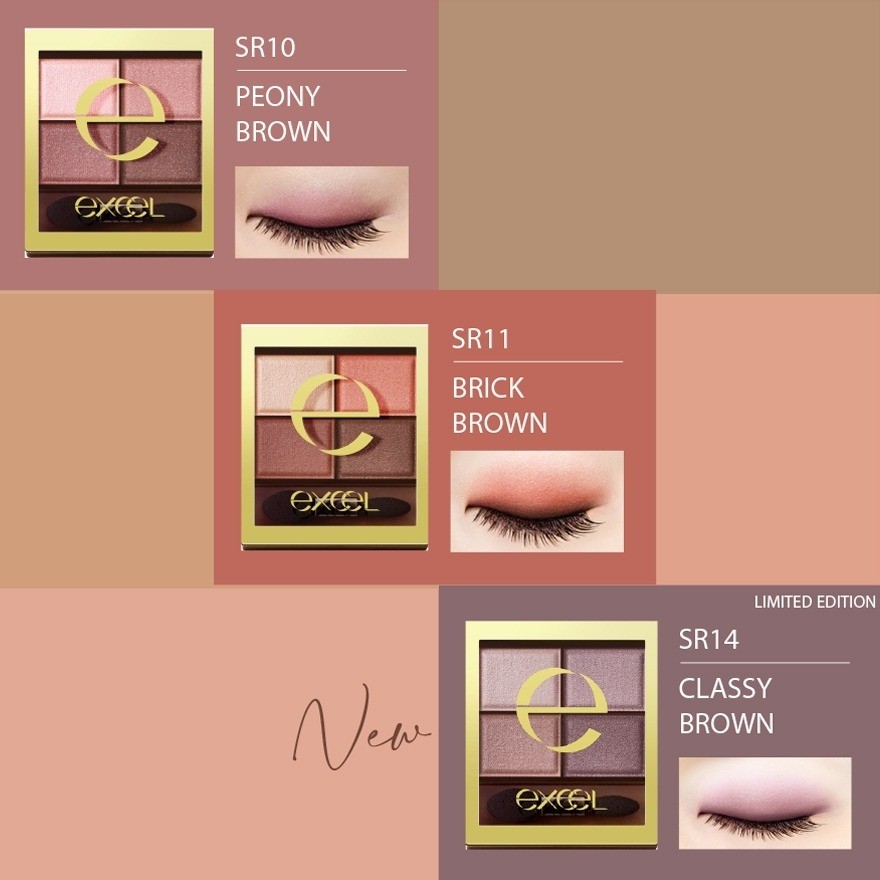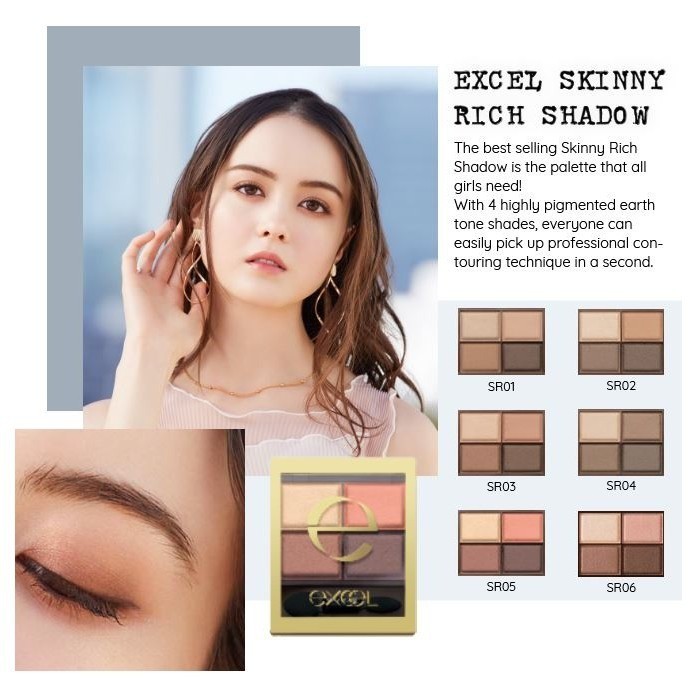EXCEL Skinny Rich Eye Shadow 4.3g | 8 Colors | 4-Color Eyeshadow Palette Direct from Japan