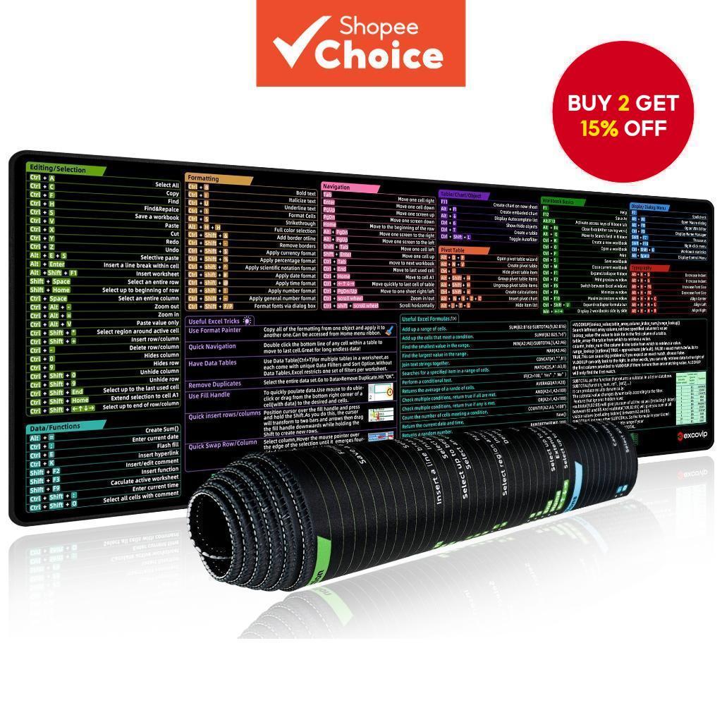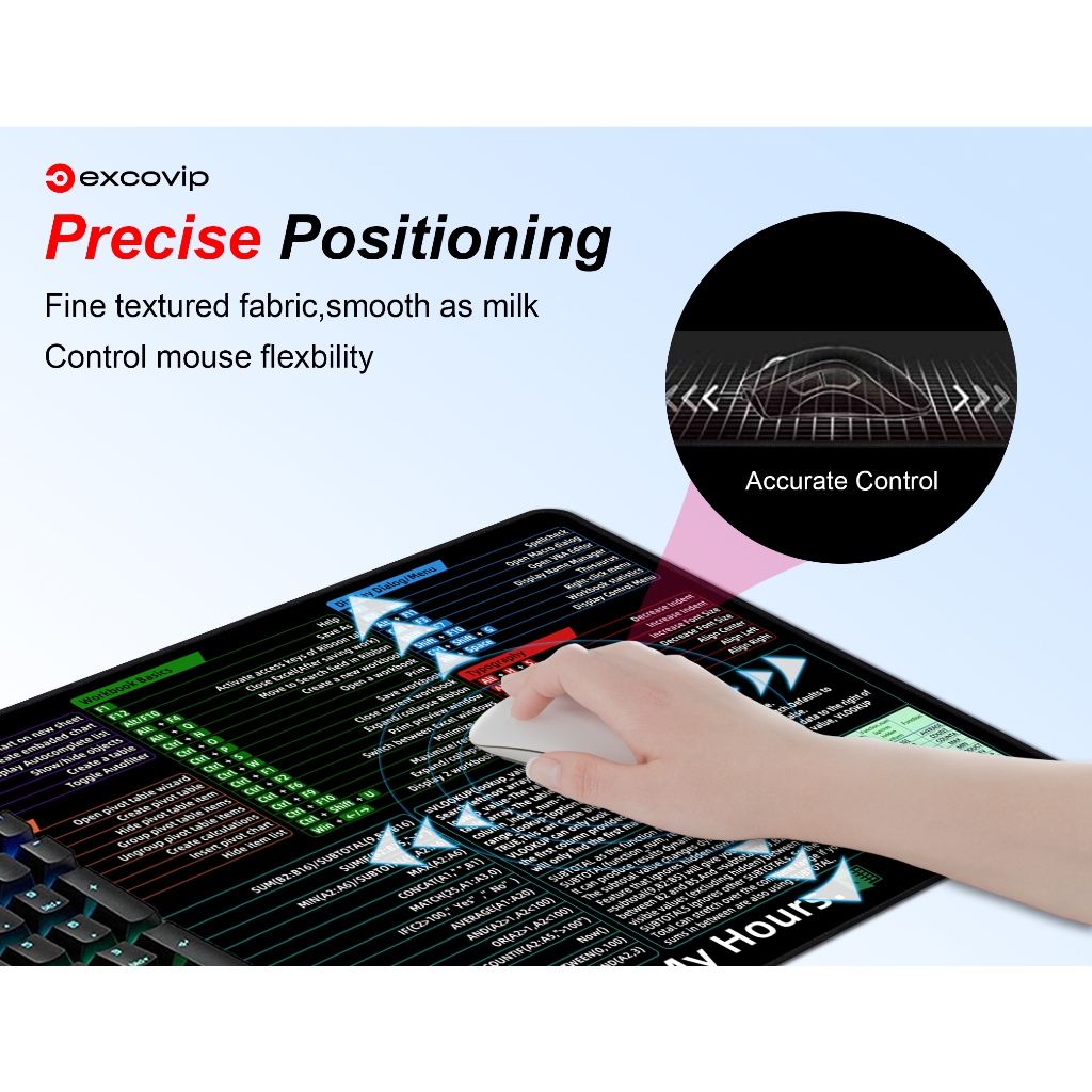 EXCOVIP Mouse Pad Large Size 90*30CM Excel English Shortcut Soft Lock Edge Non Slip for Pc Laptop