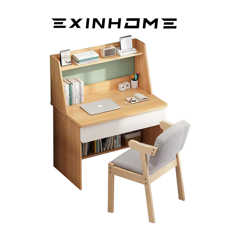 EXINHOME Computer Table Desk Bookshelf Integrated Home Bedroom Student Study Table with Drawer