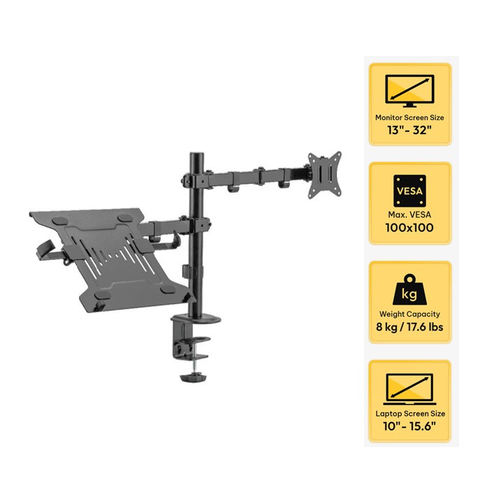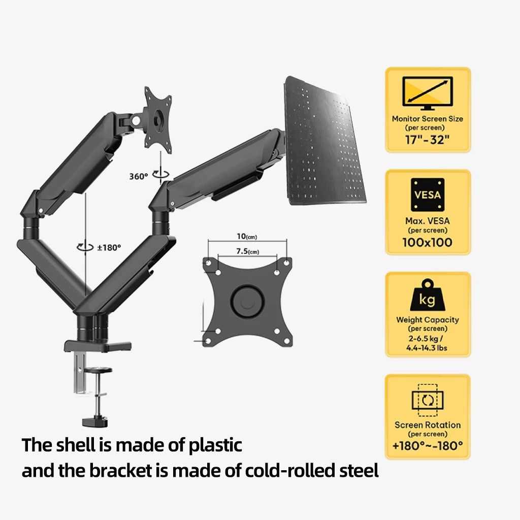 EXPOSE Dual Monitor Stand Mount Bracket With Laptop Stand Tray Adjustable Arm Desktop Mount