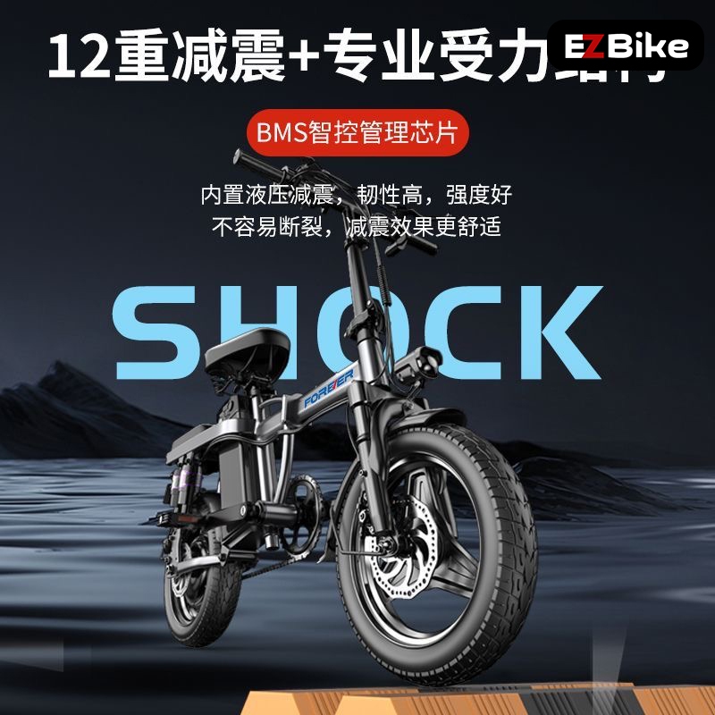 EZBike eBike Lithium Battery E-Bike Electric Bicycle Scooter Tubeless 48v 400W Forever Folding Shock