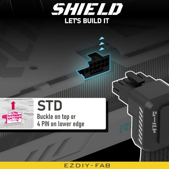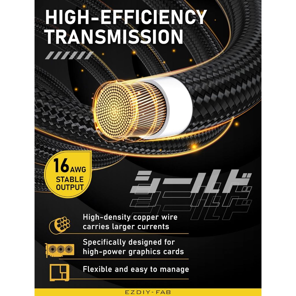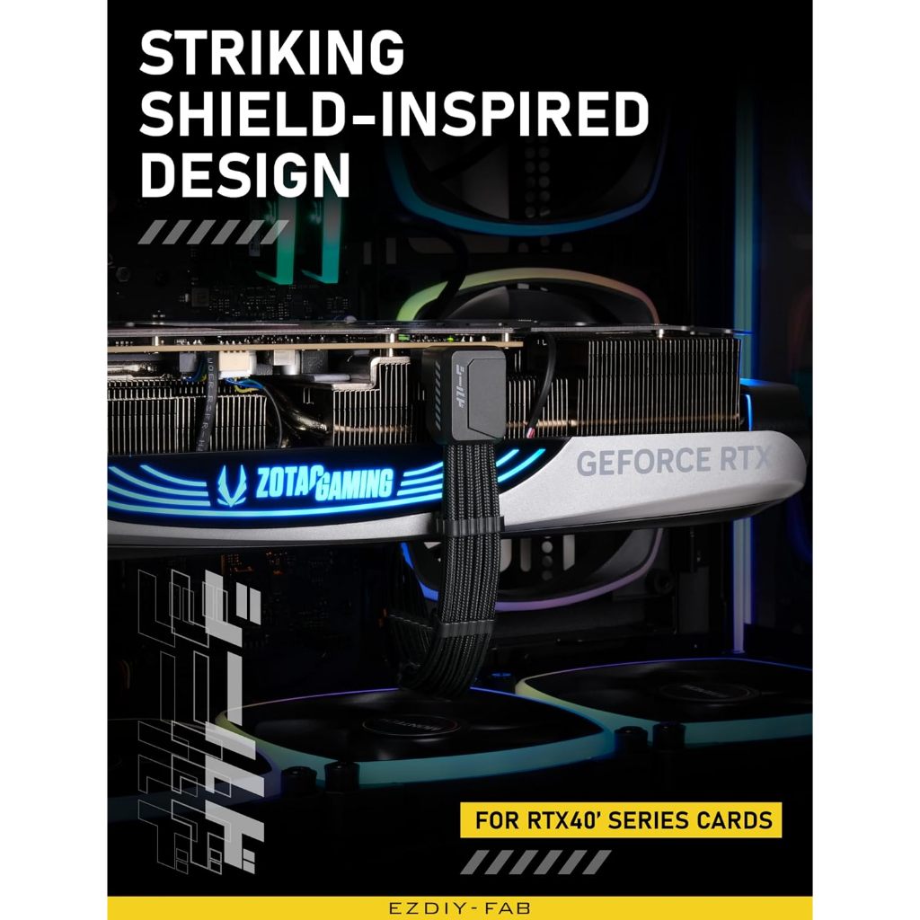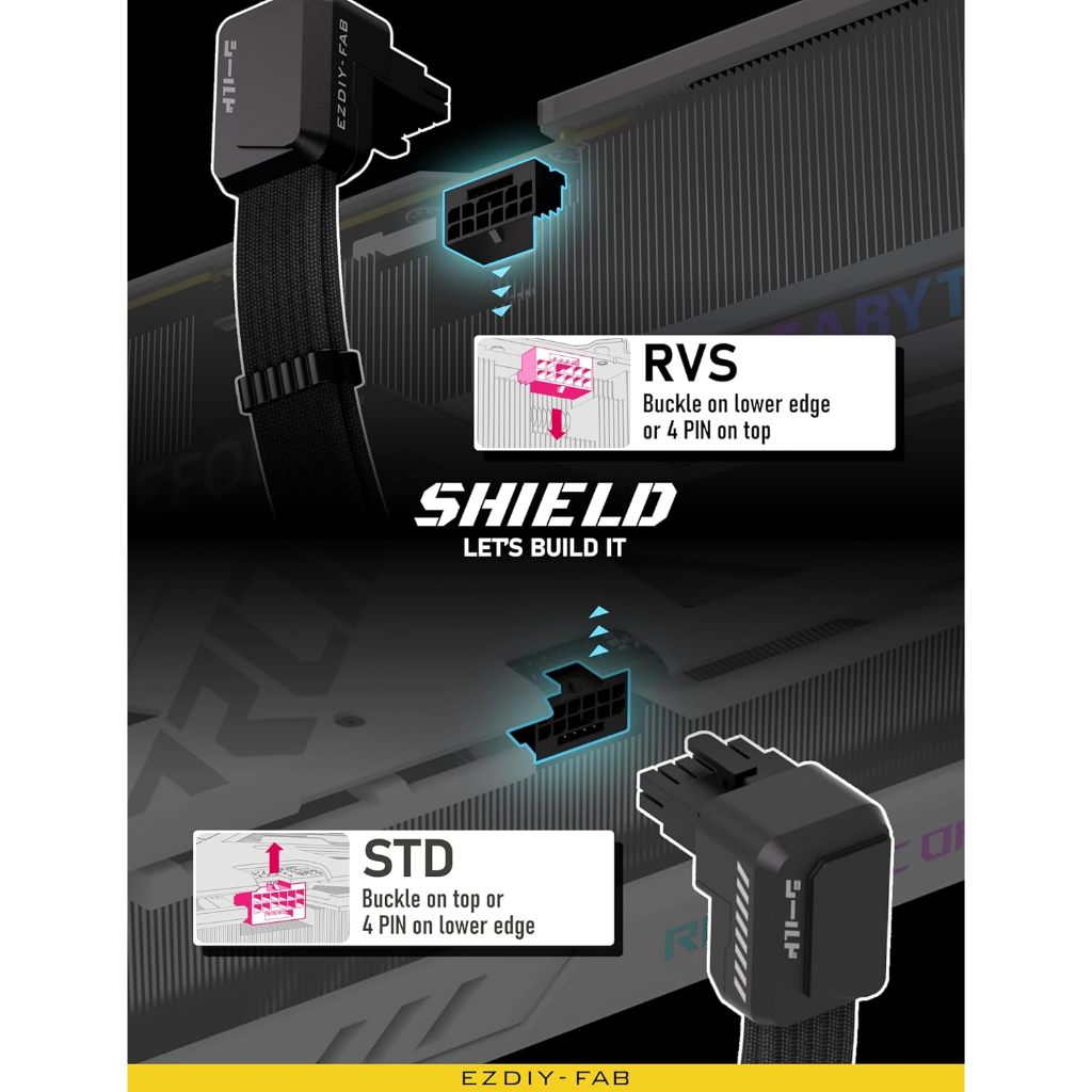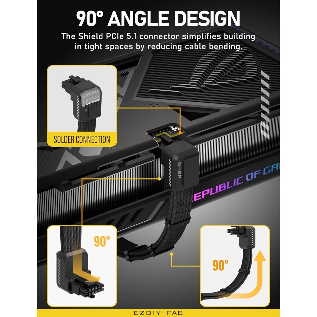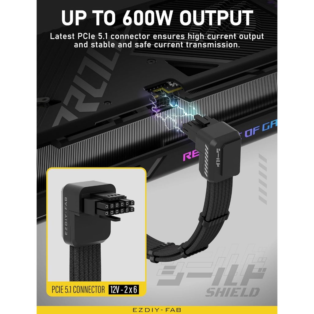 EZDIY-FAB (Graphics Card Power Extension Cable) Shield PCIE 5.1 GPU Cable with 90 Degree 12V-2x6 Angle Adapter (Black)