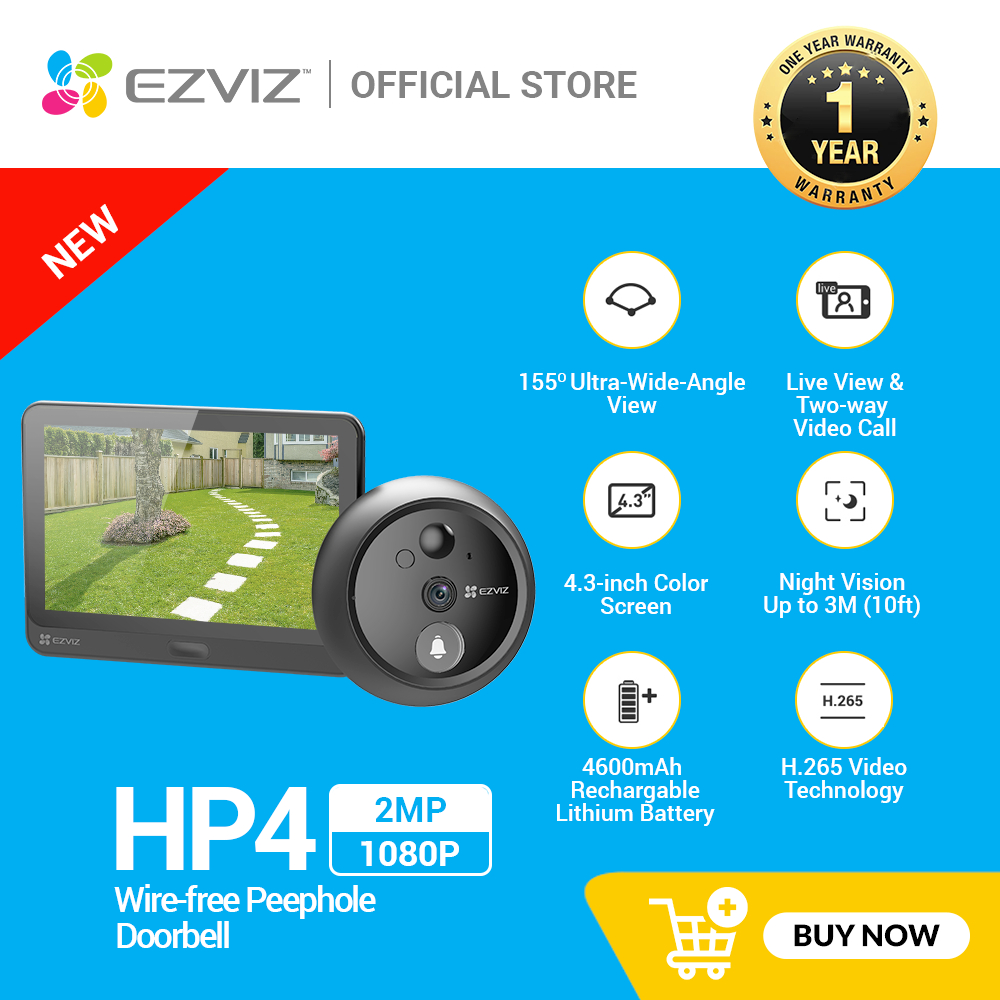 EZVIZ HP4 1080P Smart Video Door Viewer Wire Free Peephole Security Camera With Rechargeable Battery