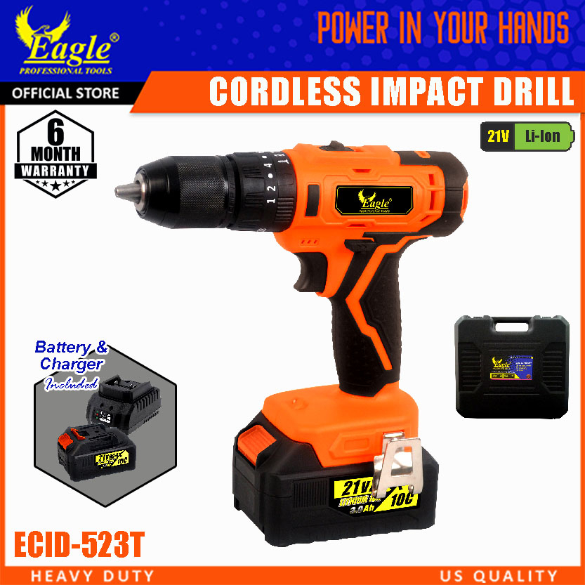 21V Cordless Impact Drill ECID-523T with Lithium-Ion 3.0Ah Battery and Fast Charger