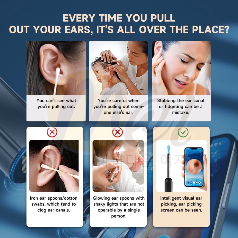 Ear Cleaner Wi-Fi Smart Visual Wax Remover Endoscope Earpick Tool With Light Camera With 8 Ear Picks
