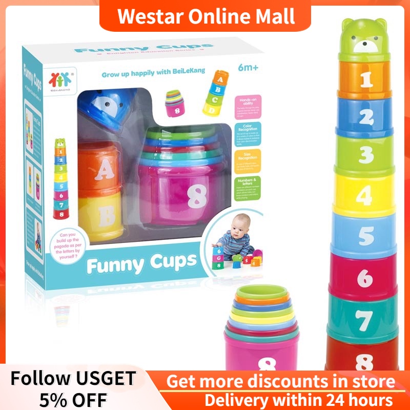 Early Education Baby Stacking Cups Educational Toys for Kids Fun Set of Cups Jenga 0-3 Years Old