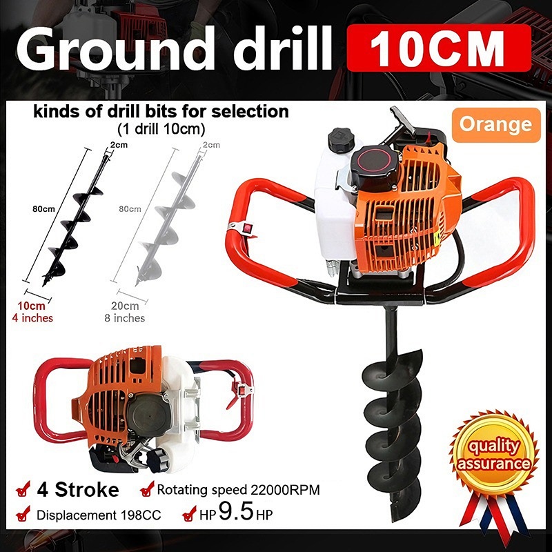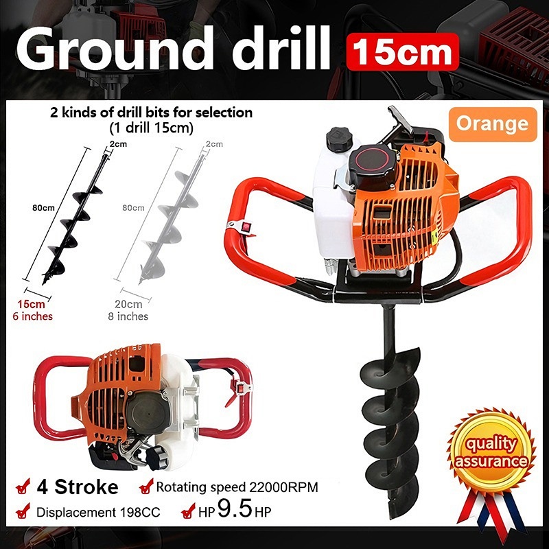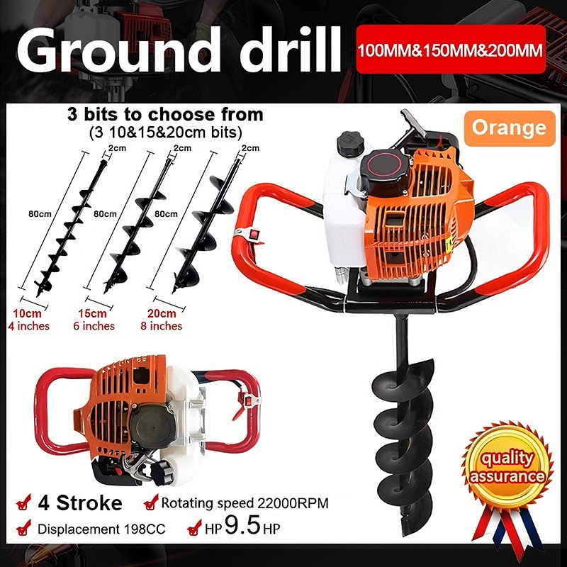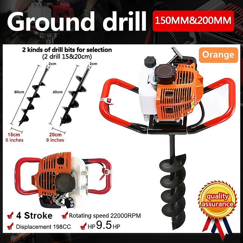 Earth Ground Auger Drill Machine Engine 2 Stroke 4HP with FREE Drill Bits 200/150MM POST HOLE DIGGER