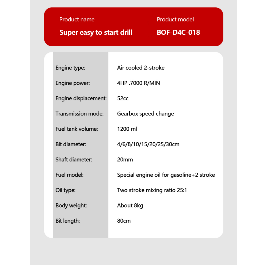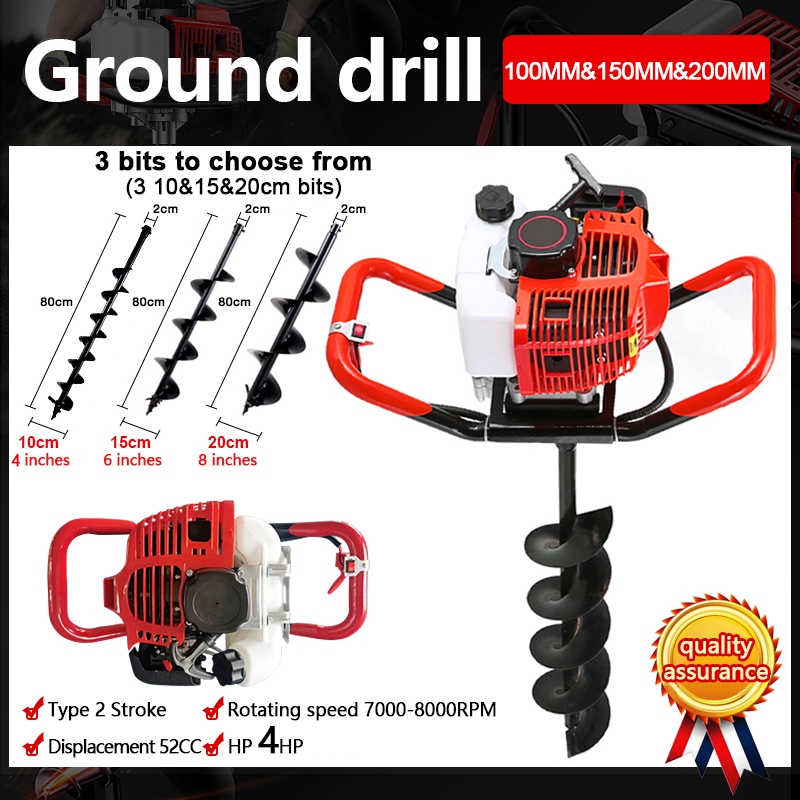 Earth Ground Auger Machine 2/4-Stroke 52cc Engine with FREE BIT 100/150 x800mm PH-EAM-52C PHI