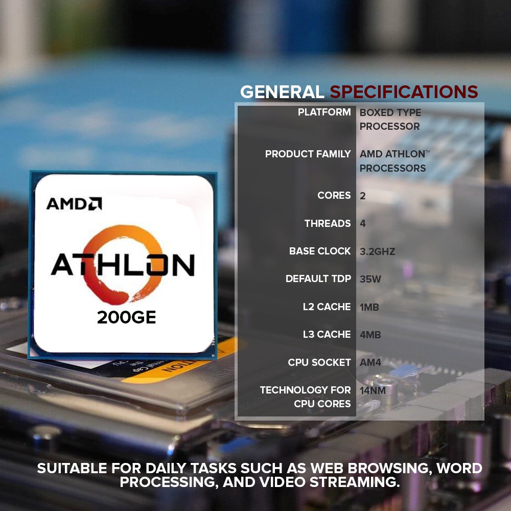 EasyPC | AMD Athlon 200GE Vega3 Socket Am4 3.2ghz Processor AMD FAN MPK