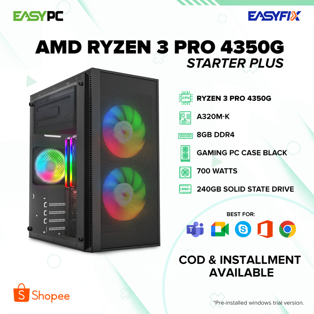 EasyPC | Easy Build RYZEN 3 4350G| A320 / 8GB| 240GB| 700W|Desktop Computer Set / 1 Year Warranty