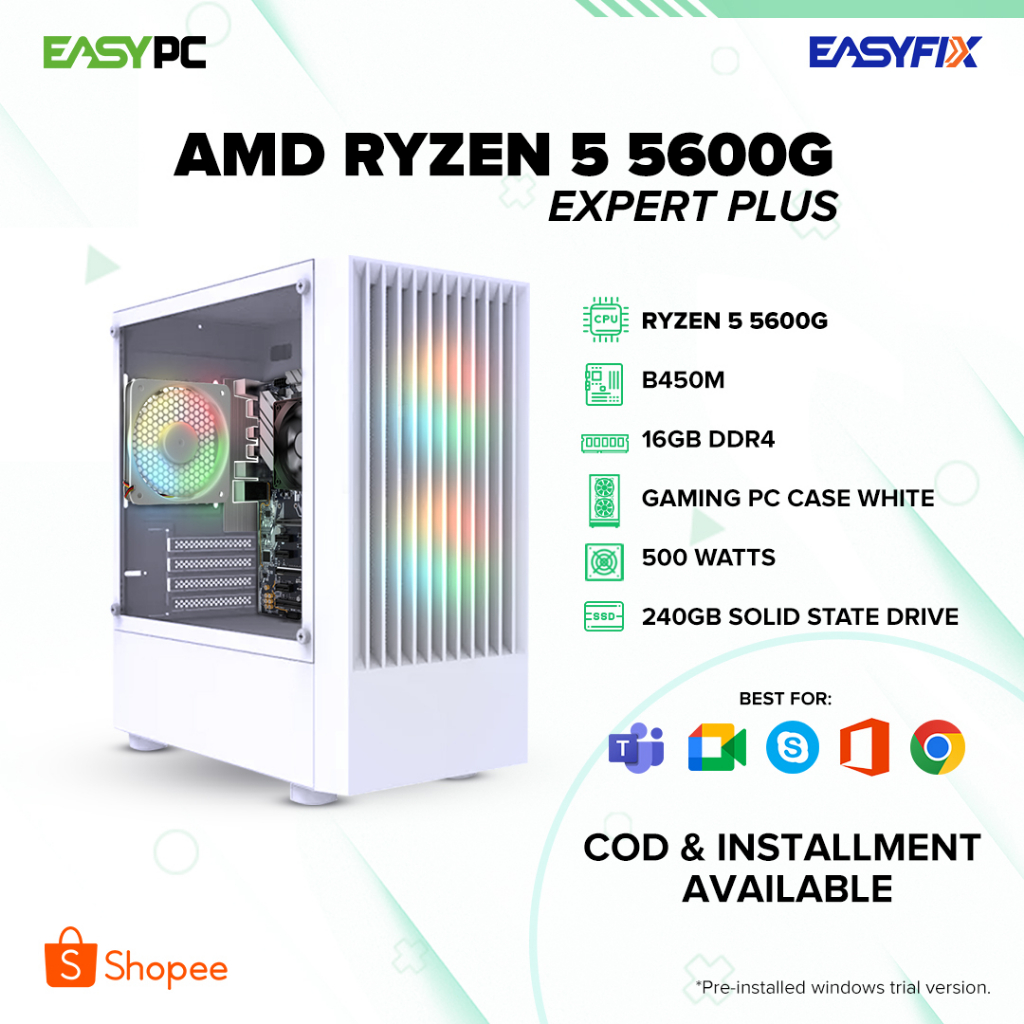 EasyPC | Easy Build RYZEN 5 5600G| B450| 16GB| 500W| 240GB| Desktop Computer Set / 1 year warranty