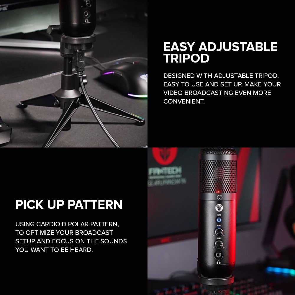 EasyPC | Fantech MCXO1 Leviosa USB Microphone| condenser| Easy Adjustable Tripod Lightning effects