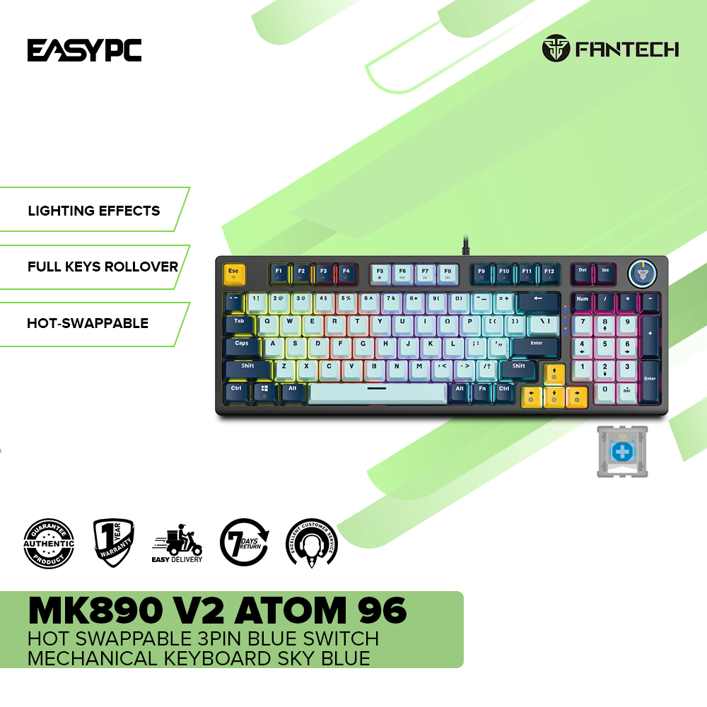 EasyPC| Fantech MK890 V2 Atom 96 Mechanical Keyboard| Sky/Navy Blue| Red/Blue switch| hot swappable