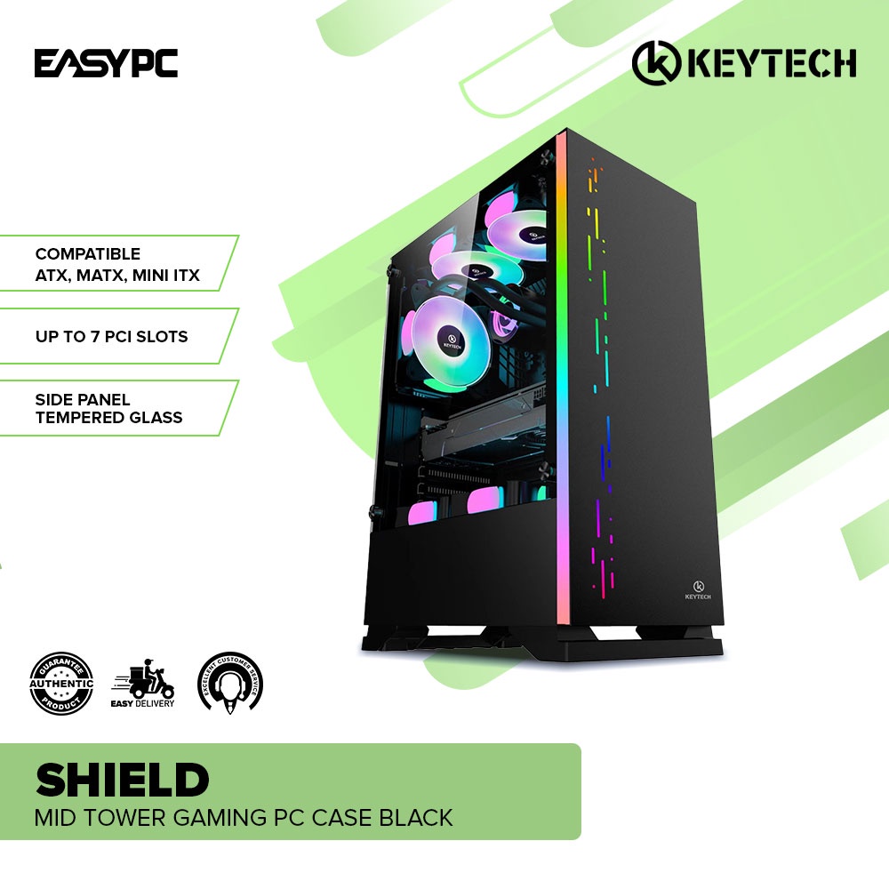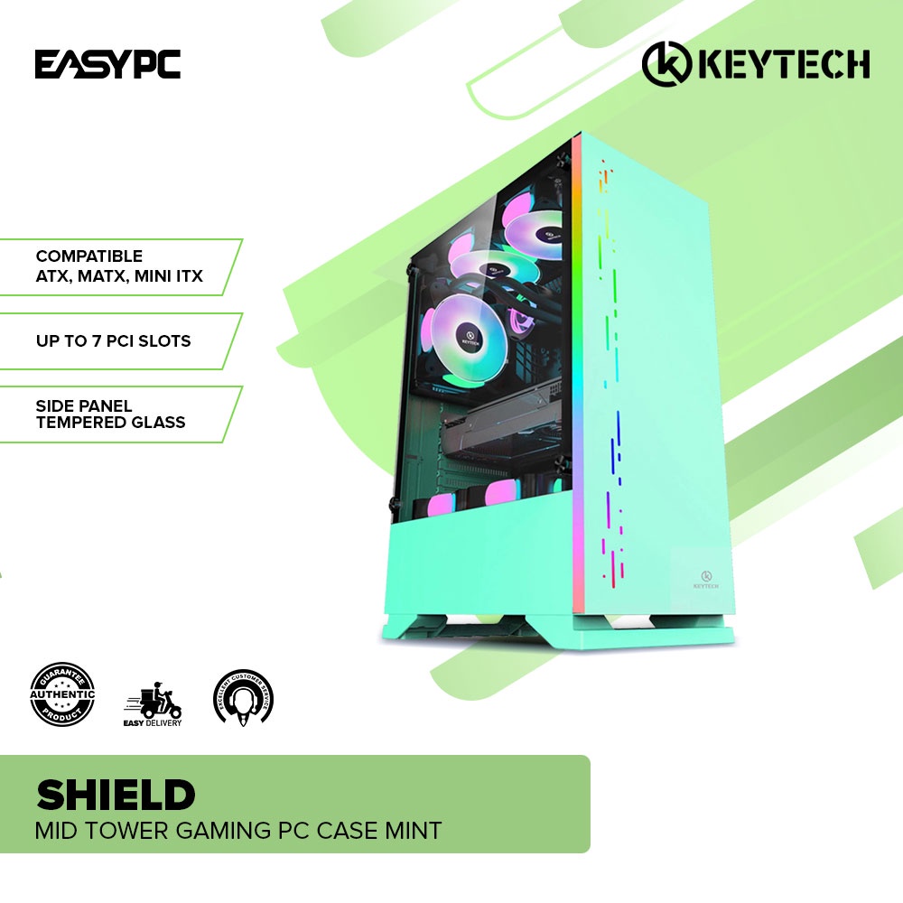EasyPC | Keytech Shield Mid Tower Gaming PC Case Pink, White, Black or Mint