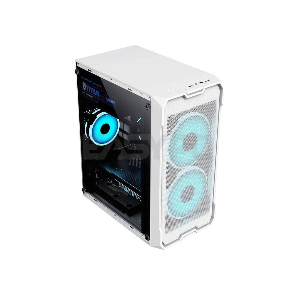 EasyPC| Keytech T-100 tempered glass pc case gaming| Micro ATX| Black and White| No fans included