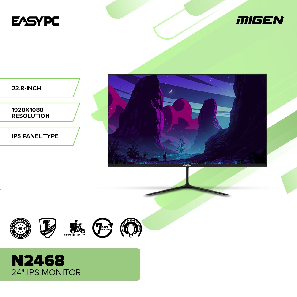 EasyPC | Migen N2468 24 inch Monitor, IPS Display , FULL HD, 75hz Refresh Rate Gaming Monitor