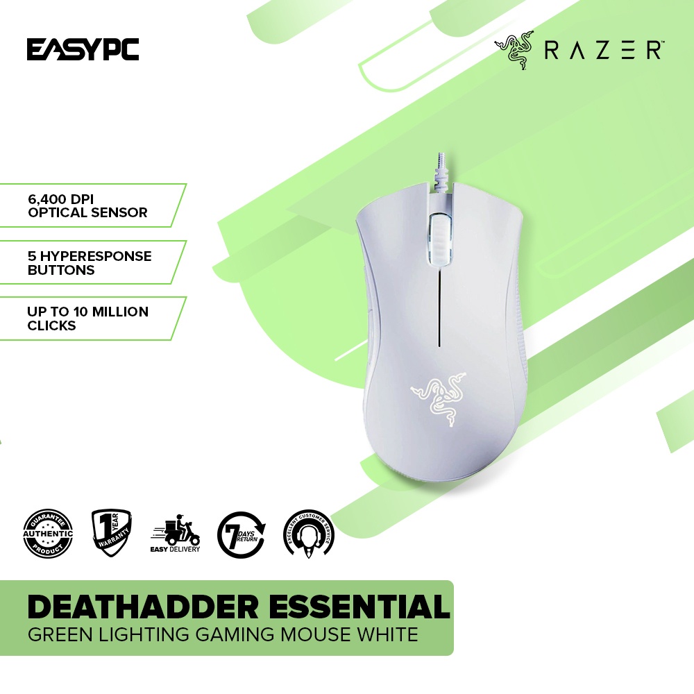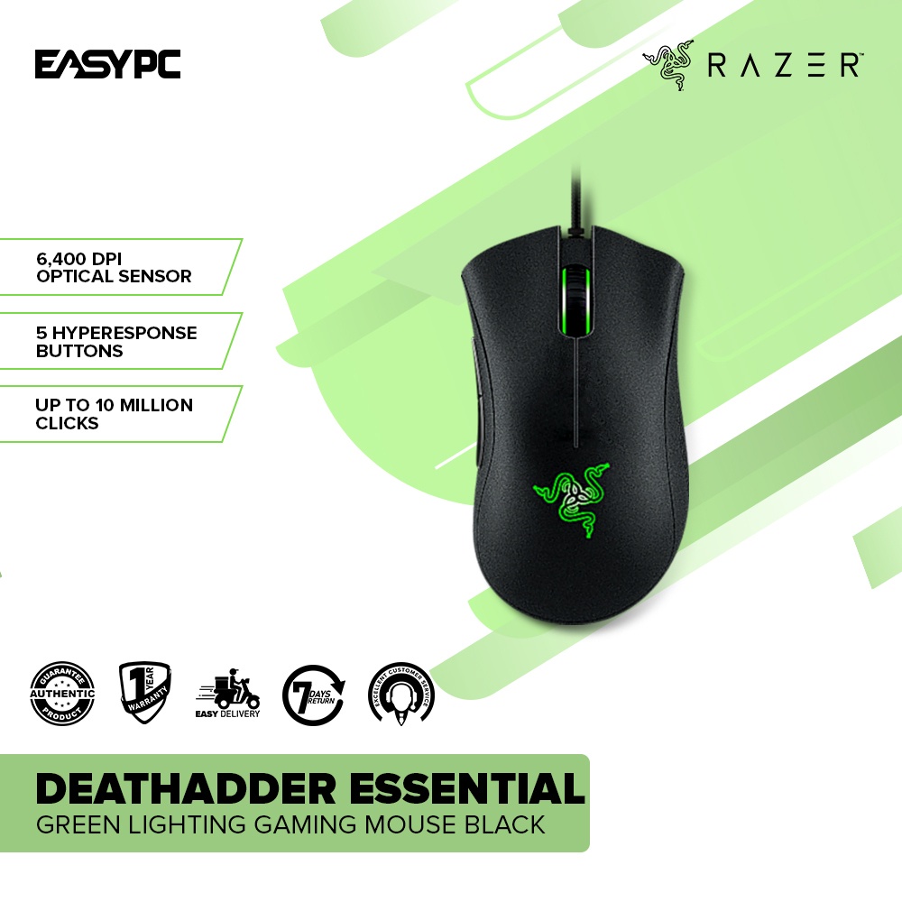 EasyPC | Razer Deathadder wired Gaming Mouse| Essential Green Lighting | Black and White