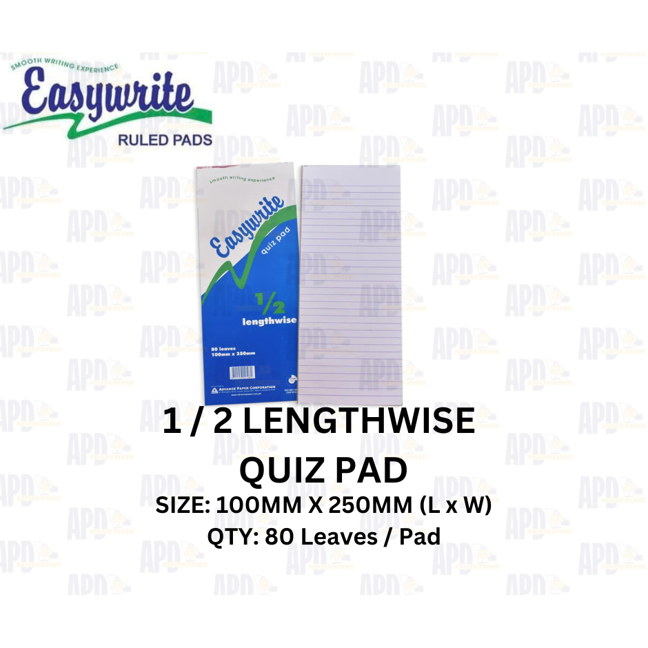 Easywrite Quiz Pad Paper -1/4 Pad, Crosswise, Lenghtwise, Intermediate Pad [SOLD PER 5 PADS]