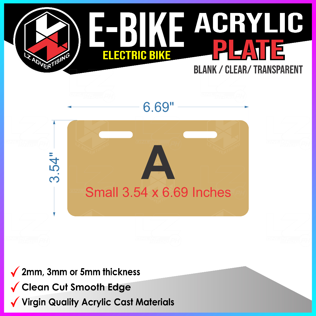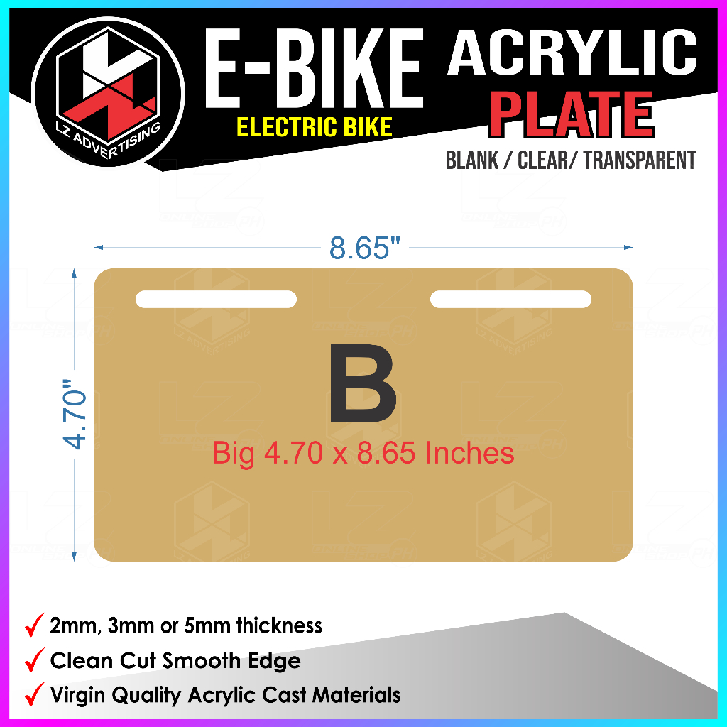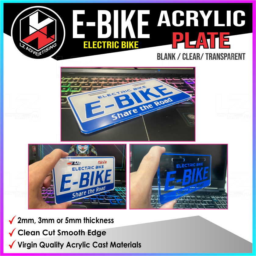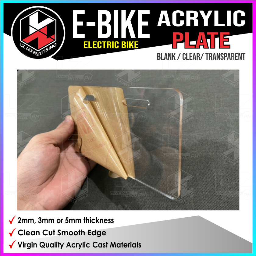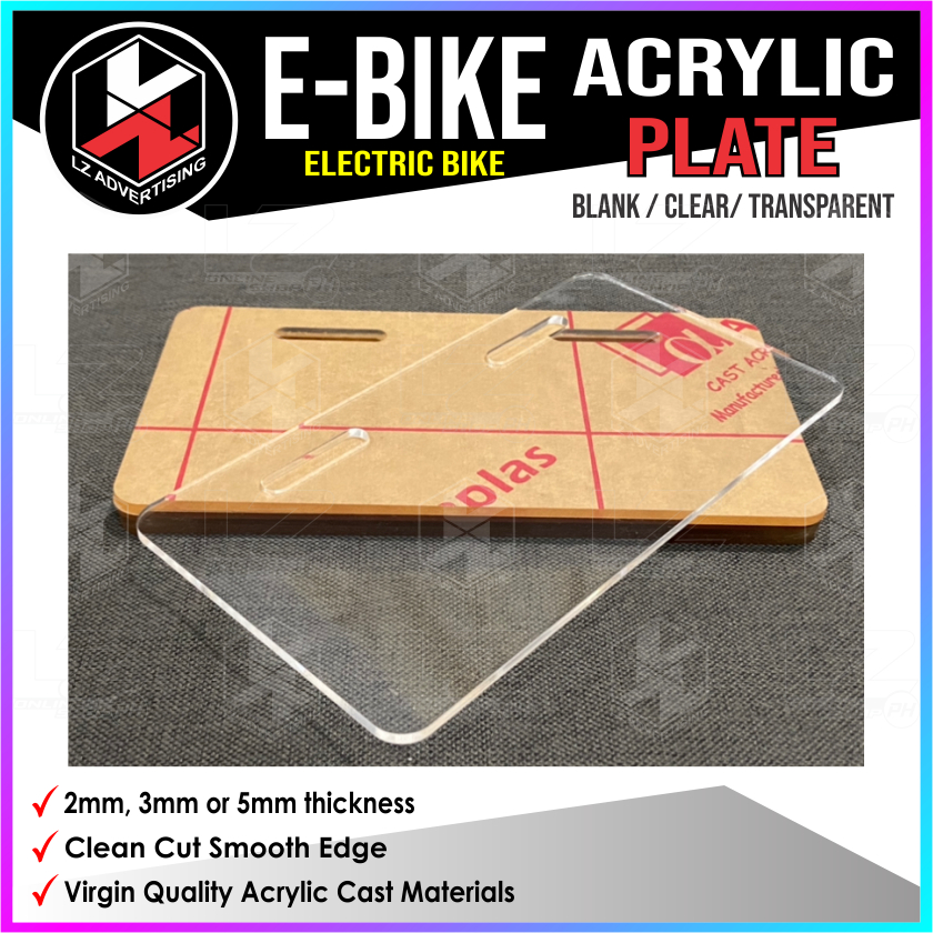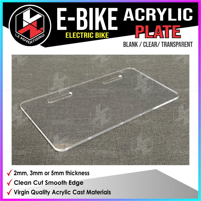 Ebike Plate, Electric Bike, NWOW, Acrylic Plate, Blank Plate Clear / Transparent, Plate Cover