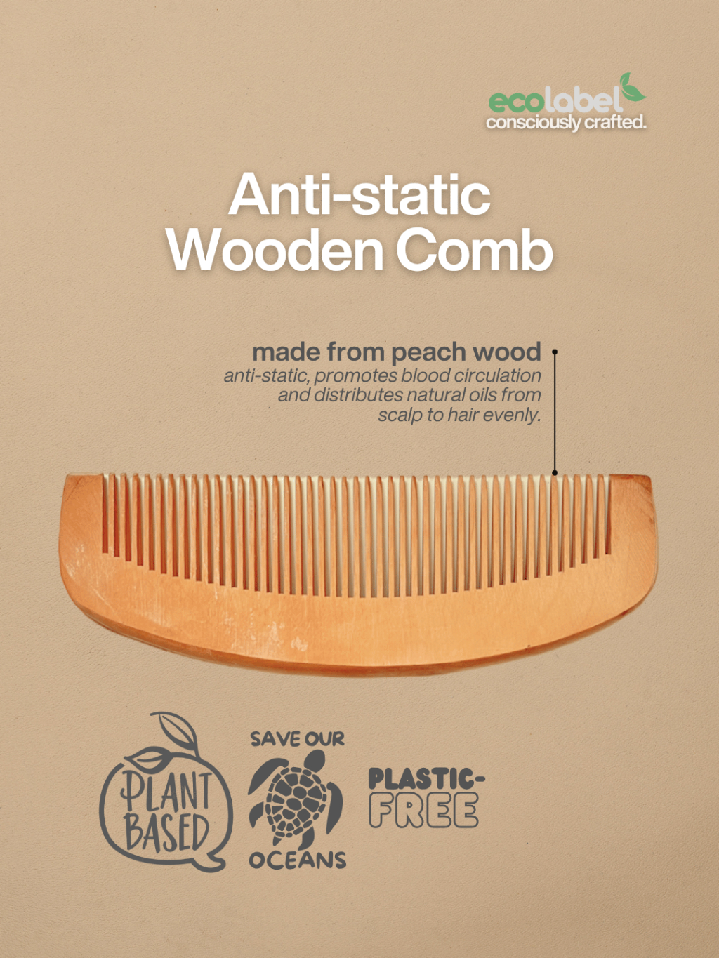 Eco-Friendly Anti-static Wooden Comb moon shape 100% Biodegradable Sustainable Plant-Based