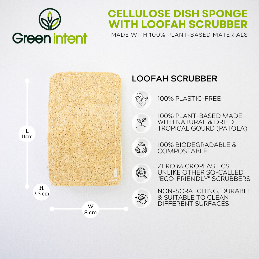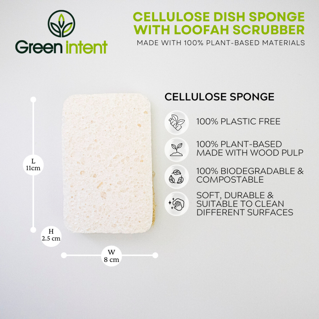 Eco Sponge Cellulose Dish Sponge with Loofah Scrubber | 100% Plant-Based